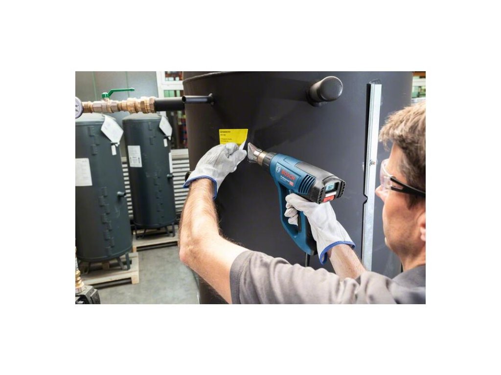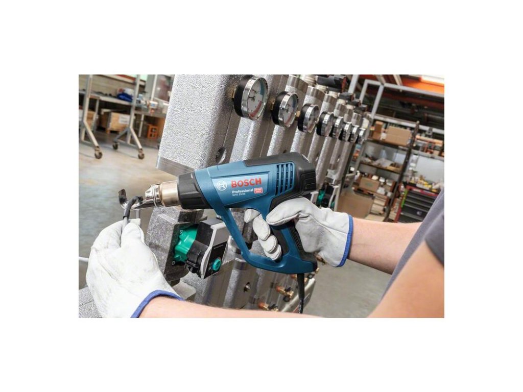 Teplovzdušná pištoľ GHG 23-66, Teplovzdušná pištoľ GHG 23-66 Professional poskytuje plné ovládanie teploty a prietoku vzduchu. Disponuje 10 stupňami prietoku vzduchu, ako aj digitálne nastaviteľnou teplotou v krokoch po 10 °C a štyrmi vlastnými programami, ktoré sú uložené v pamäti. Tieto funkcie sa nastavujú ľahko na displeji. Toto náradie ľahko dosiahne teplotu až 650 °C. Navyše poskytuje dlhú životnosť vďaka automatickej funkcii tepelnej ochrany, ktorá vypne ohrev a ponechá ventilátor v prevádzke. Disponuje komfortným cyklom chladenia a stabilnou pozíciou pri chladení. Táto teplovzdušná pištoľ je vynikajúca na rozmanité práce, ako napr. zváranie plastov a rúr, odstraňovanie spájky a zmršťovanie bužírok, a to najmä, ak pri práci treba špecifickú teplotu alebo špecifický prietok vzduchu. Kufor na prenášanie; Plochá dýza 50 mm (1.609.201.795); Dýza na ochranu skla 75 mm PHG-N3 (1.609.390.452)