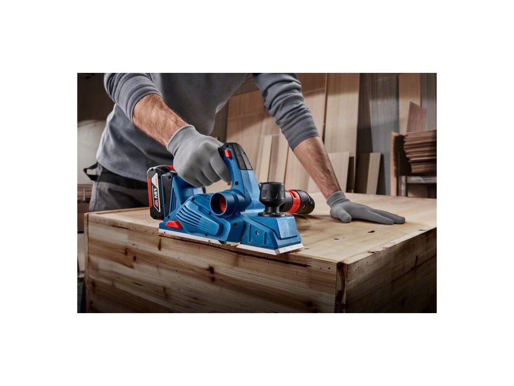 Akumulátorové hoblíky GHO 185-LI, GHO 185-LI Professional zaručuje rovnomernú plochosť počas celého pracovného procesu vďaka precíznemu technickému spracovaniu. Akumulátorový hoblík dosahuje bezproblémovú hrúbku úberu 2,6 mm v akomkoľvek drevenom materiáli. Jeho výstupný výkon je podobný výkonu elektrického náradia. Je vybavený vylepšeným odstraňovaním prachu s odsávaním a duálnym odstraňovaním hoblín a umožňuje jednoduchú výmenu noža bez nutnosti vyrovnávania, aby sa zaistila trvalá rovinnosť. GHO 185-LI Professional je vhodný na hobľovanie prírodných alebo spracovaných drevených materiálov a na odstraňovanie materiálu a dosiahnutie rovného povrchu. Vodiace rameno (1.619.PB4.338); Vrecko na prach (1.619.PC1.532); Montážny kľúč (1.619.PC1.531); Kartónový box