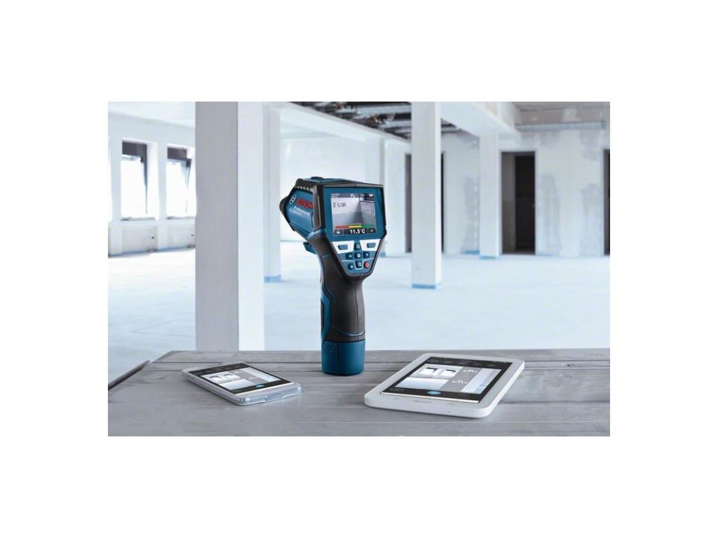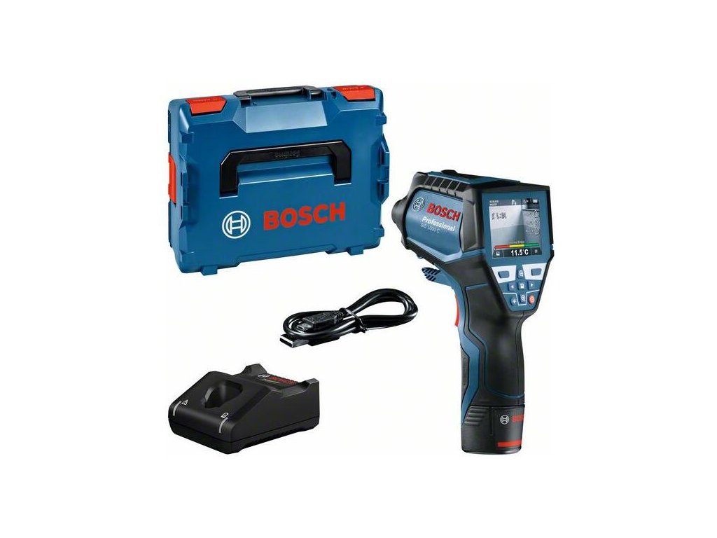 Detektor teploty GIS 1000 C, Detektor teploty GIS 1000 C Professional je rýchle riešenie na presné meranie a dokumentáciu teplôt a relatívnej vlhkosti. Integrovaný fotoaparát prístroja pri zázname meraní prakticky zaznamenáva snímky na okamžité zobrazenie s príslušnými hodnotami. Podrobné údaje sa dokumentujú rýchlo a možno ich zdieľať do vzdialených zariadení vďaka aplikácii Bosch ThermalOn prostredníctvom pripojenia Bluetooth®. Tento detektor teploty umožňuje záznam teplôt, ponúka pracovníkom päť rôznych režimov na komplexné meranie povrchovej a kontaktnej teploty (s integrovanou funkciou termočlánku typ K), výpočtom rosného bodu a tepelného mosta a používateľským režimom na vlastné hodnoty. Profesionáli môžu používať detektor teploty na množstvo prác od zisťovania rizika plesní až po kontrolu tepelných mostov, ako aj na presné kontaktné meranie odrazivých povrchov, kvapalín a priame meranie teploty vzduchu. Spolu s meraním povrchovej teploty a kontaktnej teploty umožňuje priestorový senzor prístroja GIS 1000 C Professional aj rýchle monitorovanie okolitých podmienok na presné meranie teploty v miestnosti a relatívnej vlhkosti a dokonca mnohé ďalšie možnosti použitia. Prehľadné používateľské rozhranie umožňuje intuitívne ovládanie a získavanie veľmi presných výsledkov širokého rozsahu meraní. GIS 1000 C Professional nie je vhodný na použitie v zdravotníctve. Rýchlonabíjačka GAL 12V-40 Professional (1.600.A01.9R3); L-BOXX 136 (1.600.A01.2G0); 1× akumulátor GBA 12V 2.0Ah (1.600.Z00.02X); Vložka L-BOXX na náradie; Quickstart karta; Kábel Micro USB (2.609.120.670)