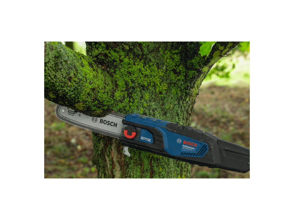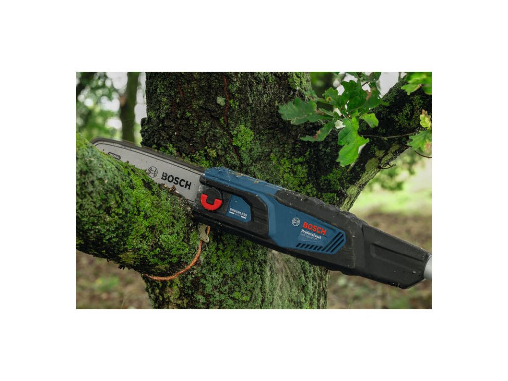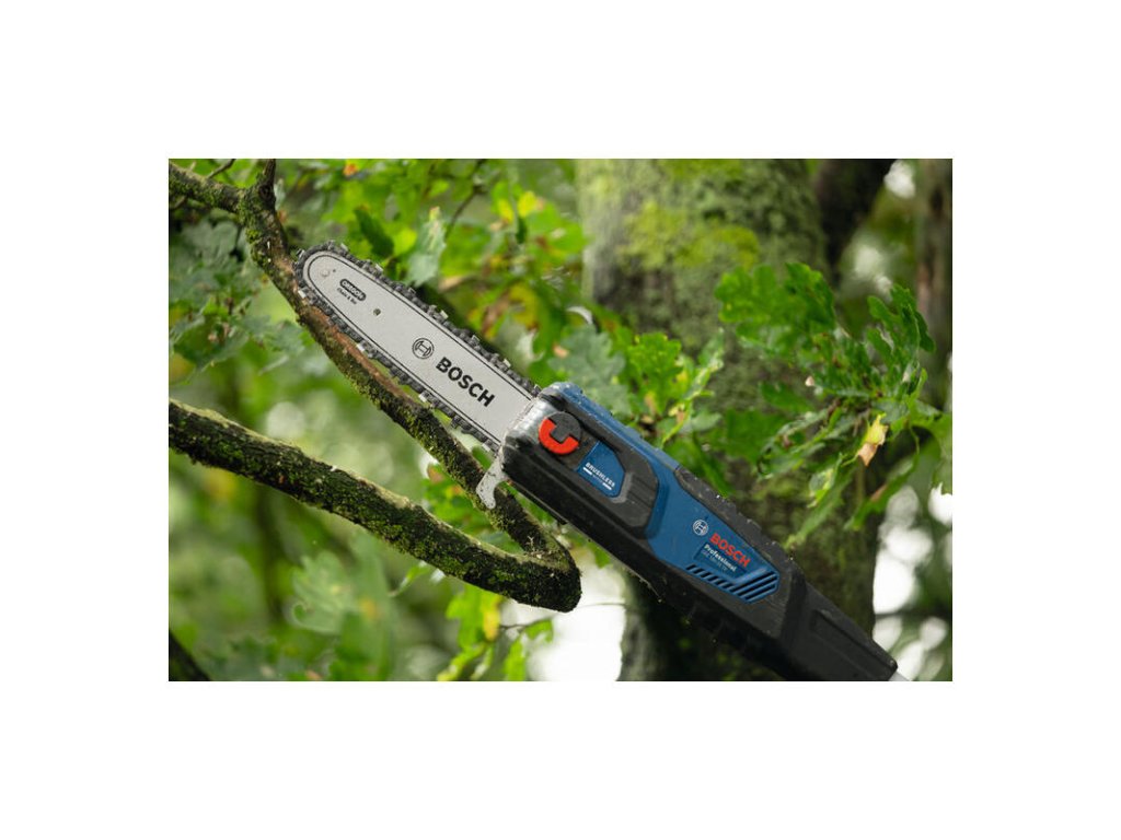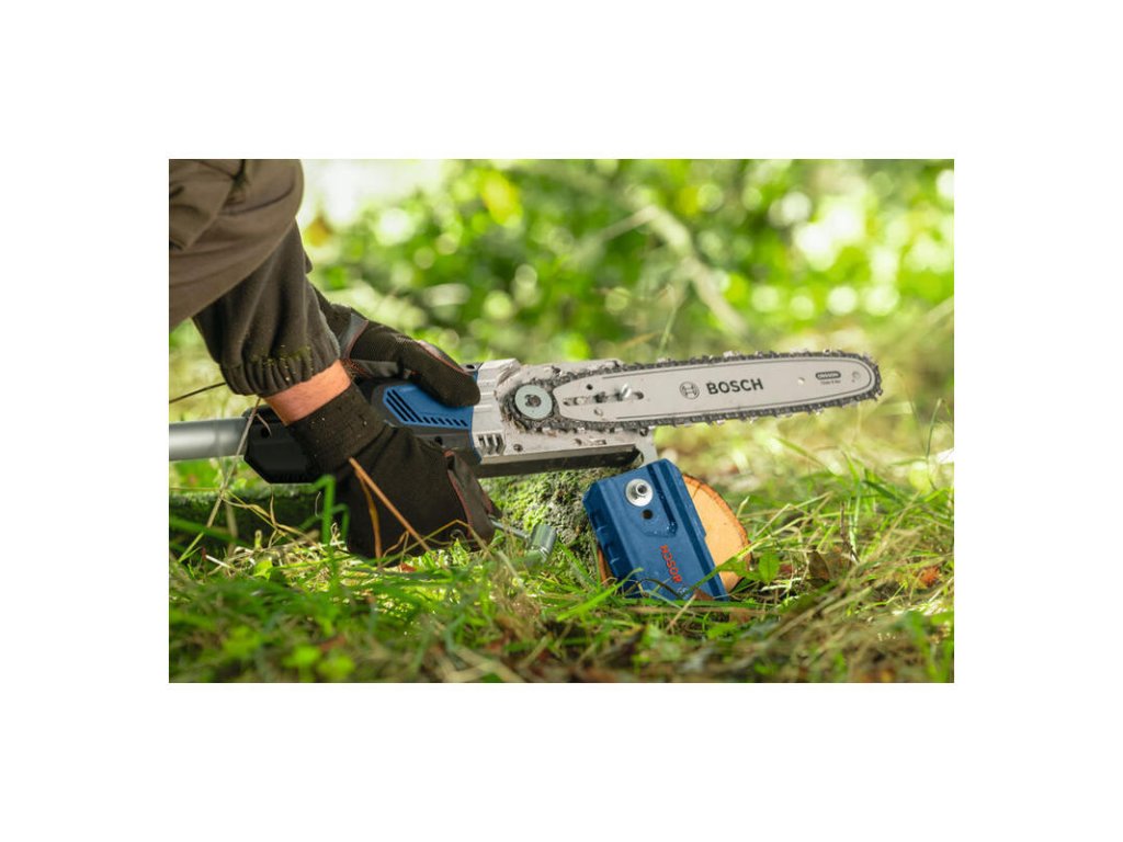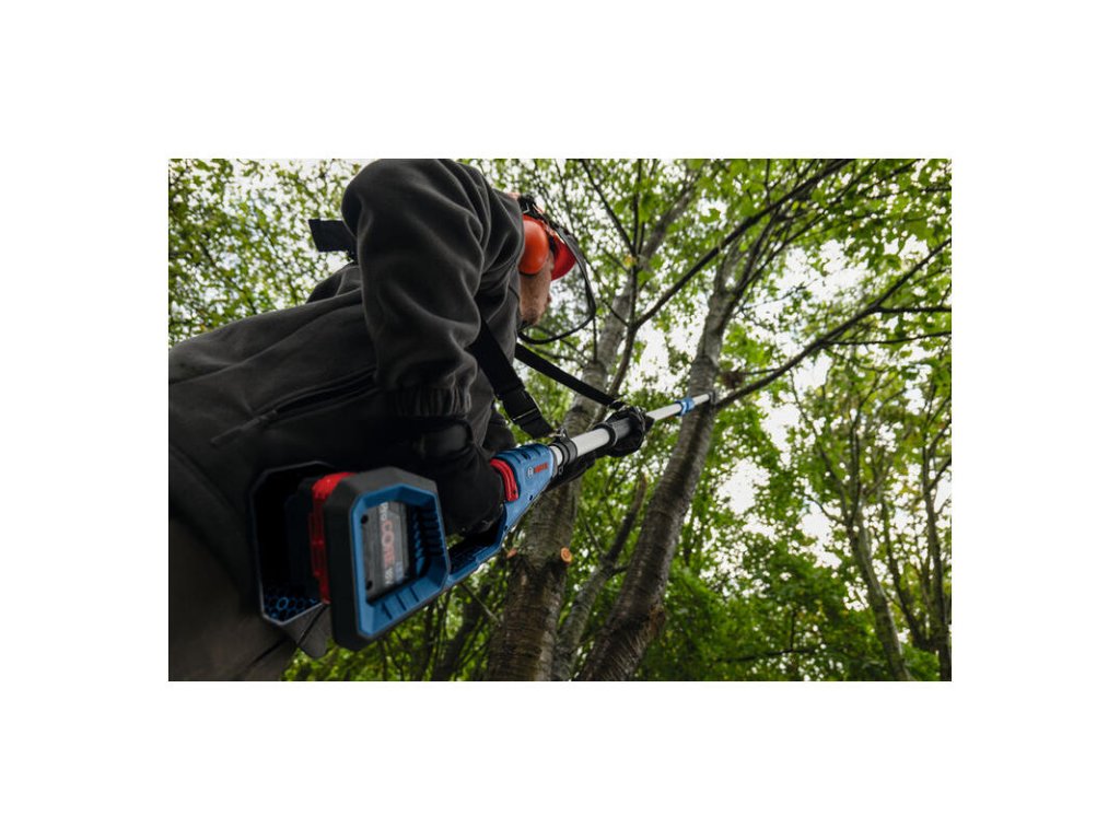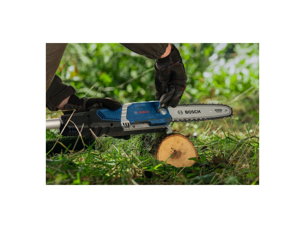 Bezpečné prerezávanie korún stromov priamo zo zeme. Teleskopická píla GKE 18V-25 TP vám umožní dosiahnuť aj na vysoké konáre bez nutnosti použitia rebríka. Výkonný motor a kvalitná reťaz Oregon si poradia aj s hrubším drevom.