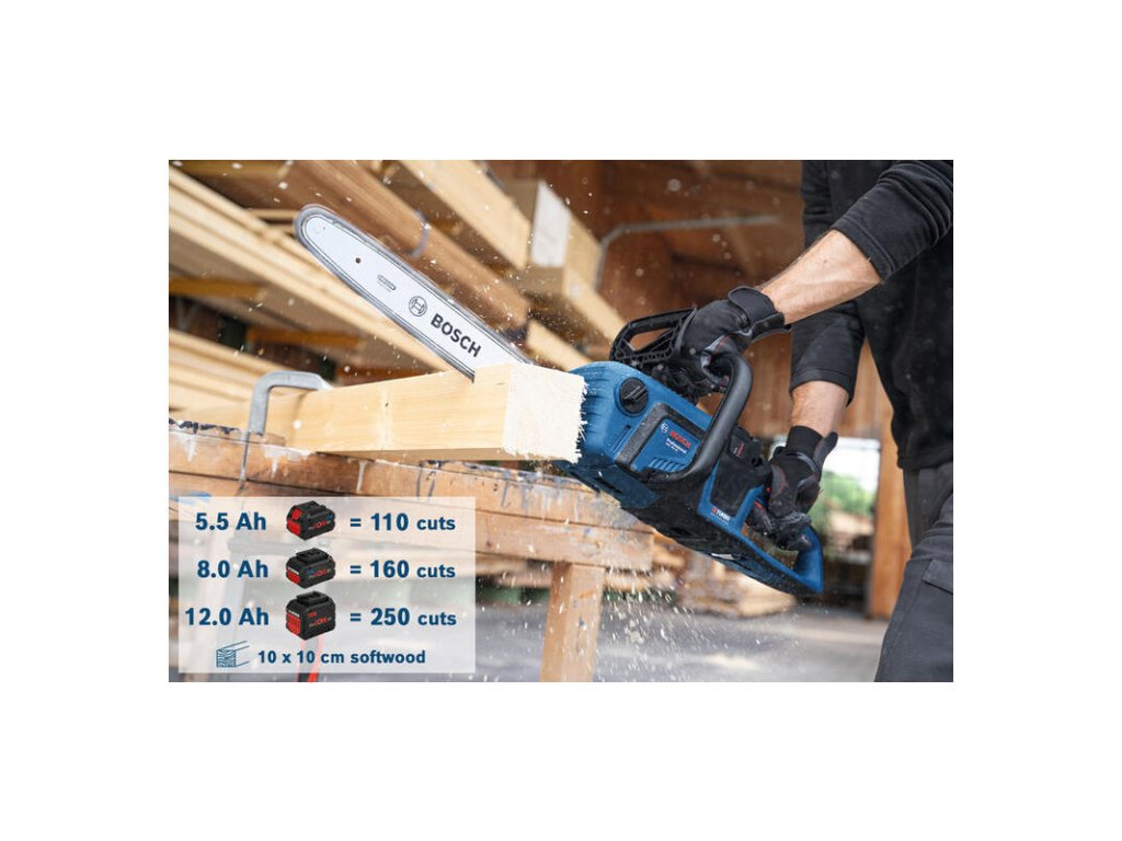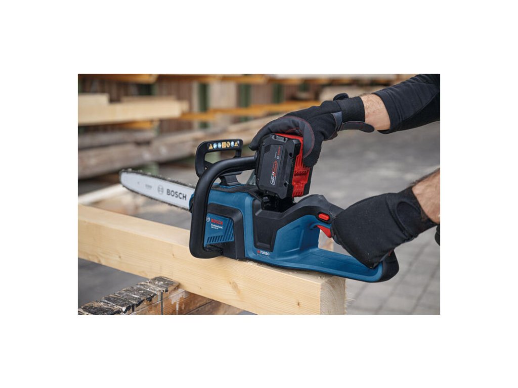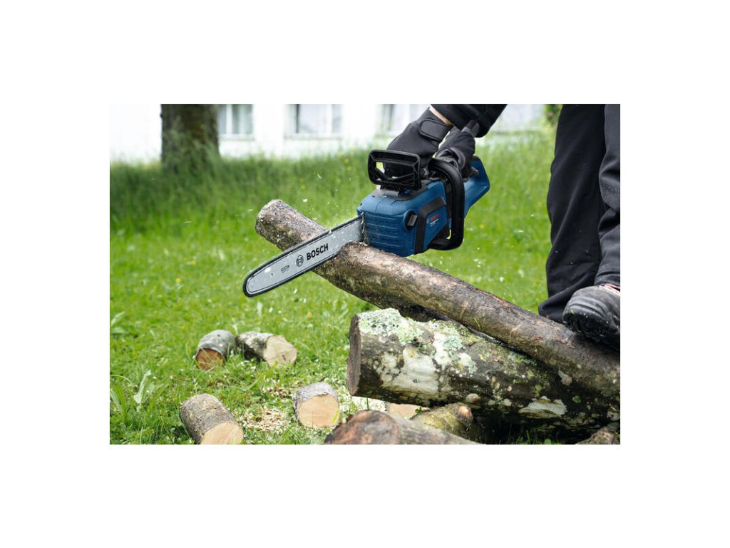 Táto akumulátorová reťazová píla GKE 18V-40 Professional je vynikajúce riešenie na všetky tesárske alebo záhradnícke práce.