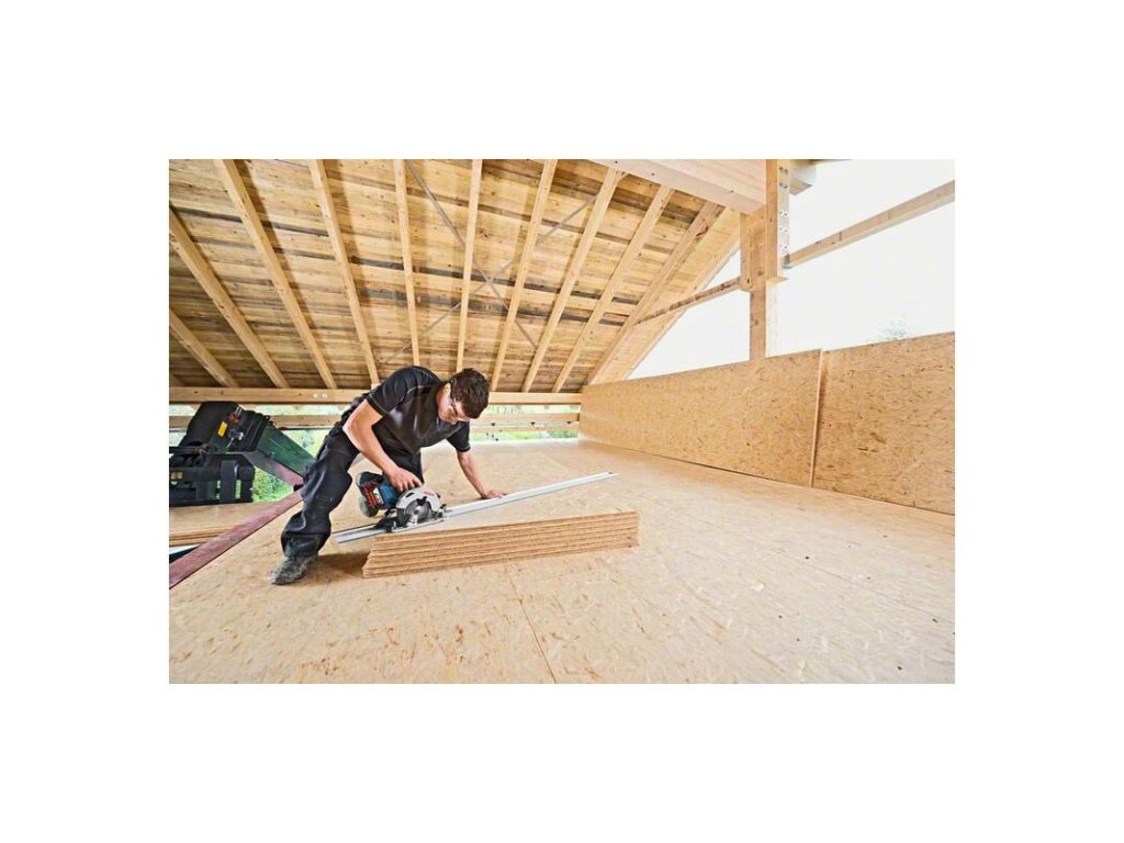 Akumulátorová okružná píla GKS 18V-57 G, Akumulátorová okružná píla bez kompromisov, Rýchly postup rezania a dlhý čas chodu vďaka výkonnému motoru DC a 5,0 Ah akumulátorom, Určená na použitie na stavbách, dokonca aj na strechách a lešeniach, Dokonale presné rezanie vďaka kompatibilným vodiacim koľajniciam, L-BOXX 238 (1.600.A01.2G2); Vložka L-BOXX; 1× pílový kotúč, Standard for Wood, 165 × 1,7/1,2 × 20 mm, 36 (2.608.642.602); Odsávací adaptér; Vnútorný šesťhran; Paralelný doraz