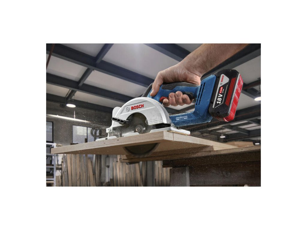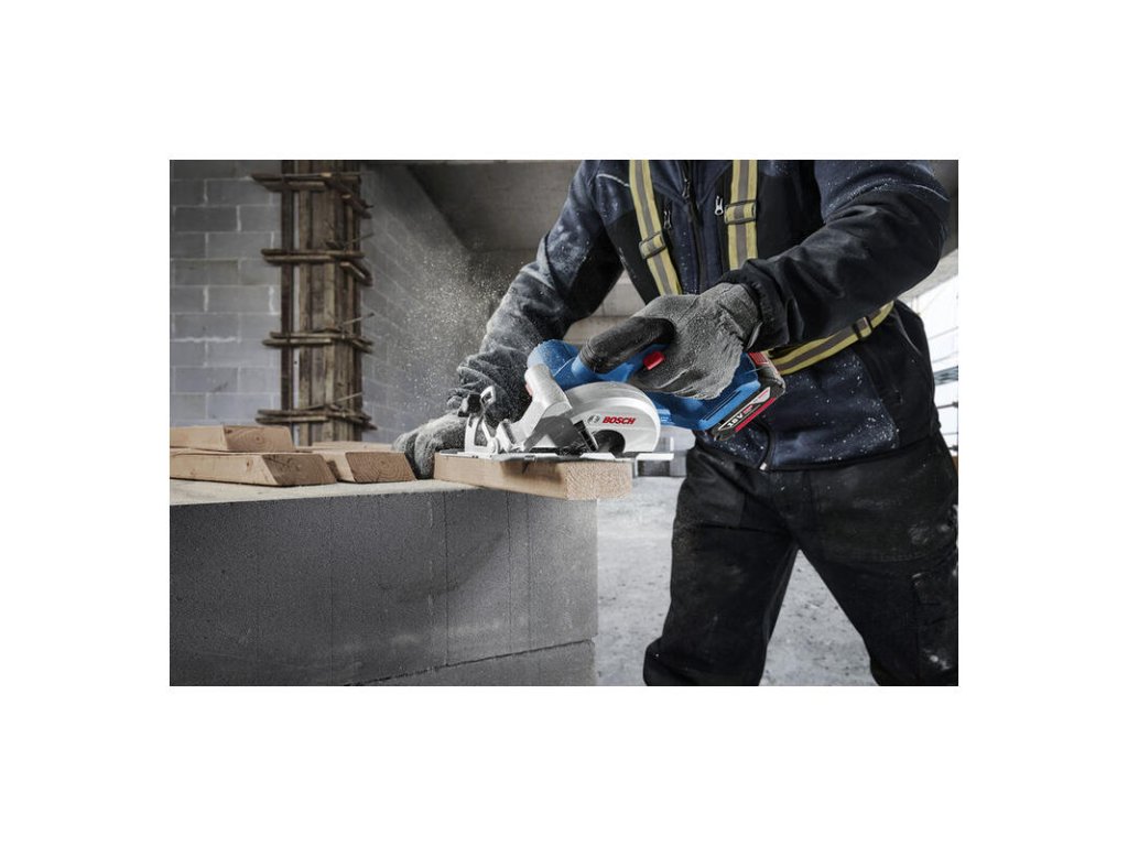 Okružná píla Bosch GKS 18V-51 Professional je navrhnutá na priečne rezy masívneho dreva, deliace rezy preglejky a dosák OSB, ako aj skosené rezy masívu.