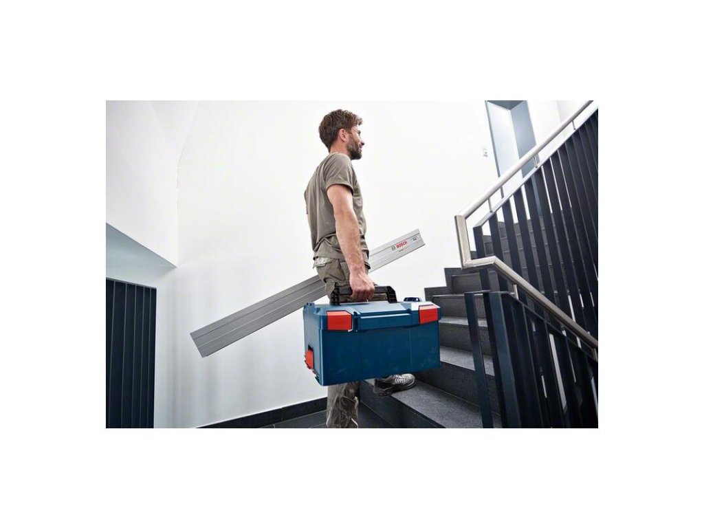 Akumulátorová zanorovacia píla BITURBO GKT 18V-52 GC, Akumulátorová ponorná píla GKT 18V-52 GC Professional poskytuje výkon sieťovej verzie pri vynikajúcej mobilite v kategórii 18V Bosch. Jej inovatívna technológia bezuhlíkového motora poskytuje maximálny rezný výkon porovnateľný so sieťovou verziou. Píla ponúka vynikajúcu mobilitu vďaka svojmu jedinečnému kompaktnému dizajnu konštrukcie umožňujúci prevádzku len s jedným akumulátorom. Táto konštrukcia s veľmi malou vzdialenosťou medzi pílovým kotúčom a stenou dosahuje iba 10 mm. Táto píla je určená pre formátovacie rezy a ponorné rezy v dreve, drevených kompozitov, doskových materiálov, hliníka a akrylového skla. Možno ju použiť s vakmi na prach a je kompatibilná so systémom odsávania prachu Bosch Click & Clean, so systémy vodiacich koľajníc Bosch, Festool, Mafell a Makita a so všetkými akumulátormi a nabíjačkami Bosch Professional 18 V (systém Professional 18V). Maximálny výkon s ProCORE18V 8,0 Ah. 1× pílový kotúč, Expert for Wood pre akumulátorové píly, 140 × 1,8/1,3 × 20 mm, 42 (2.608.644.500); L-BOXX 238 (1.600.A01.2G2); Vrecko na prach (2.608.000.696); 1× modul Bluetooth Low Energy GCY 42 Professional (1.600.A01.3WF); Šesťhranný kolíkový kľúč
