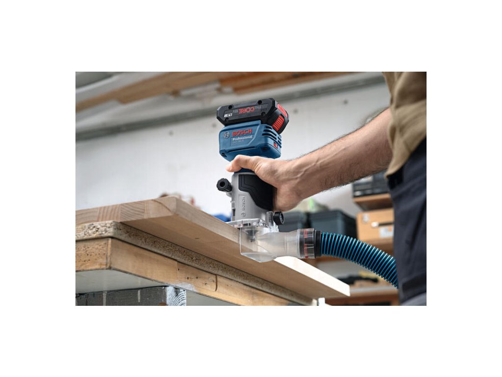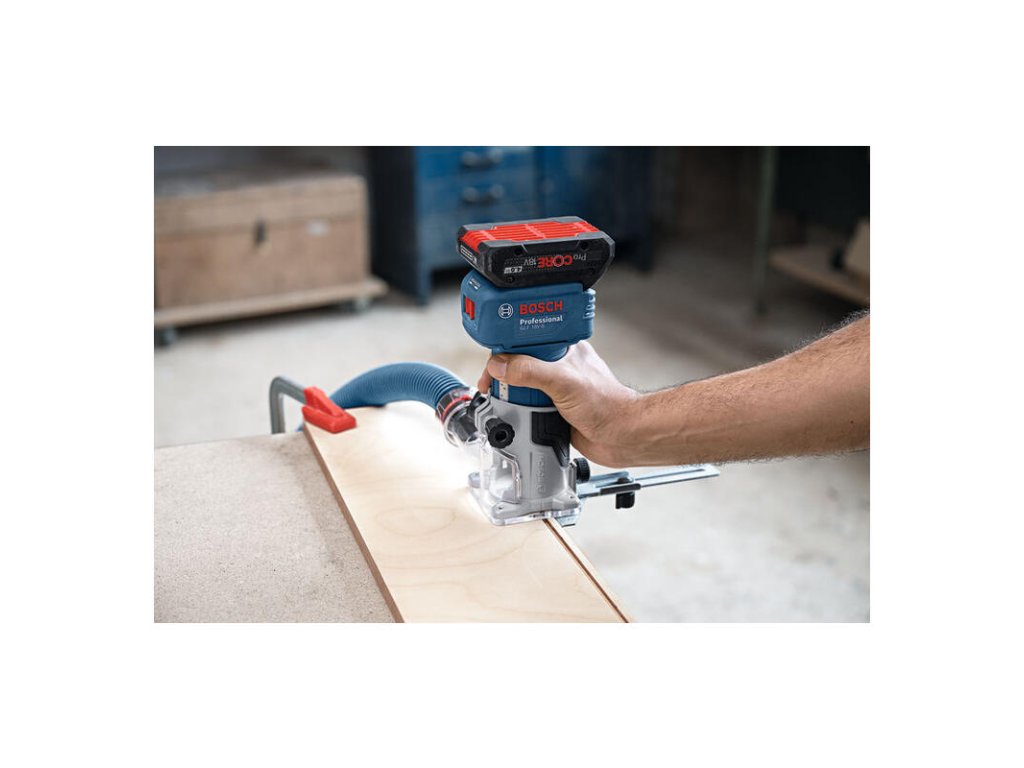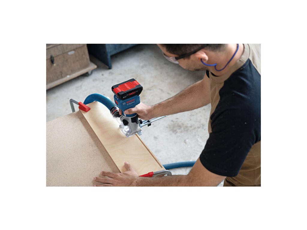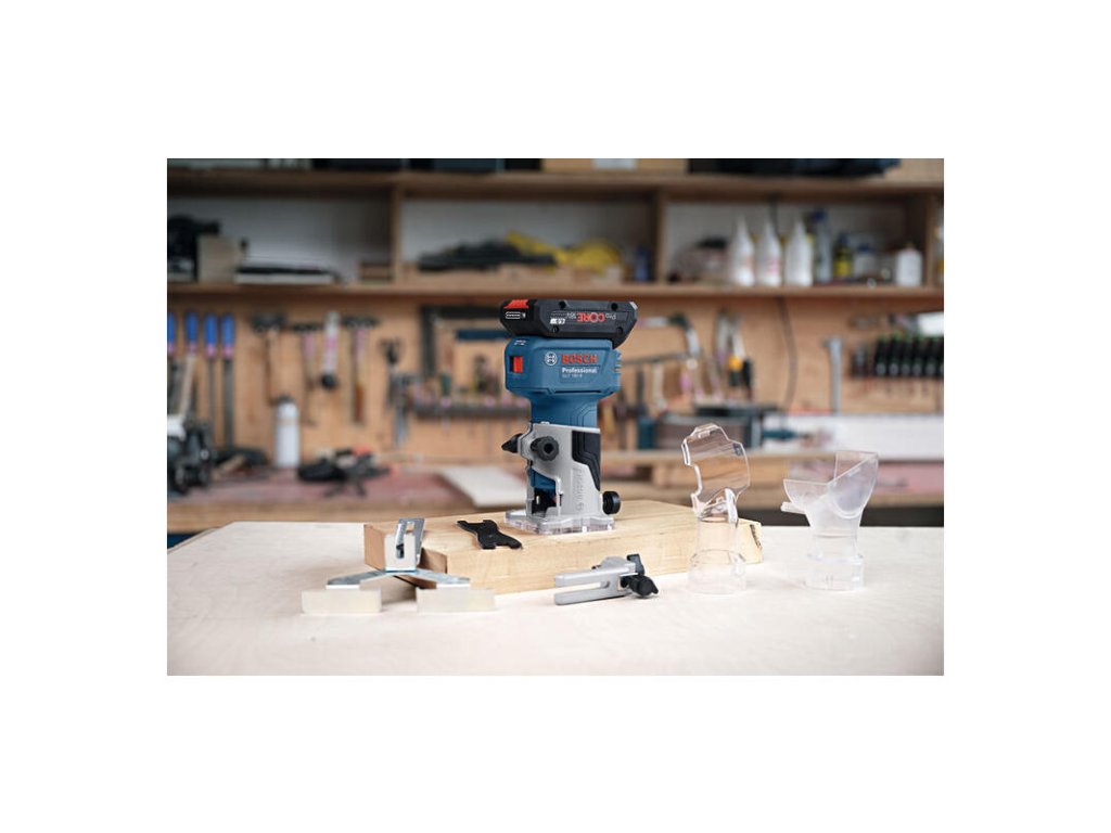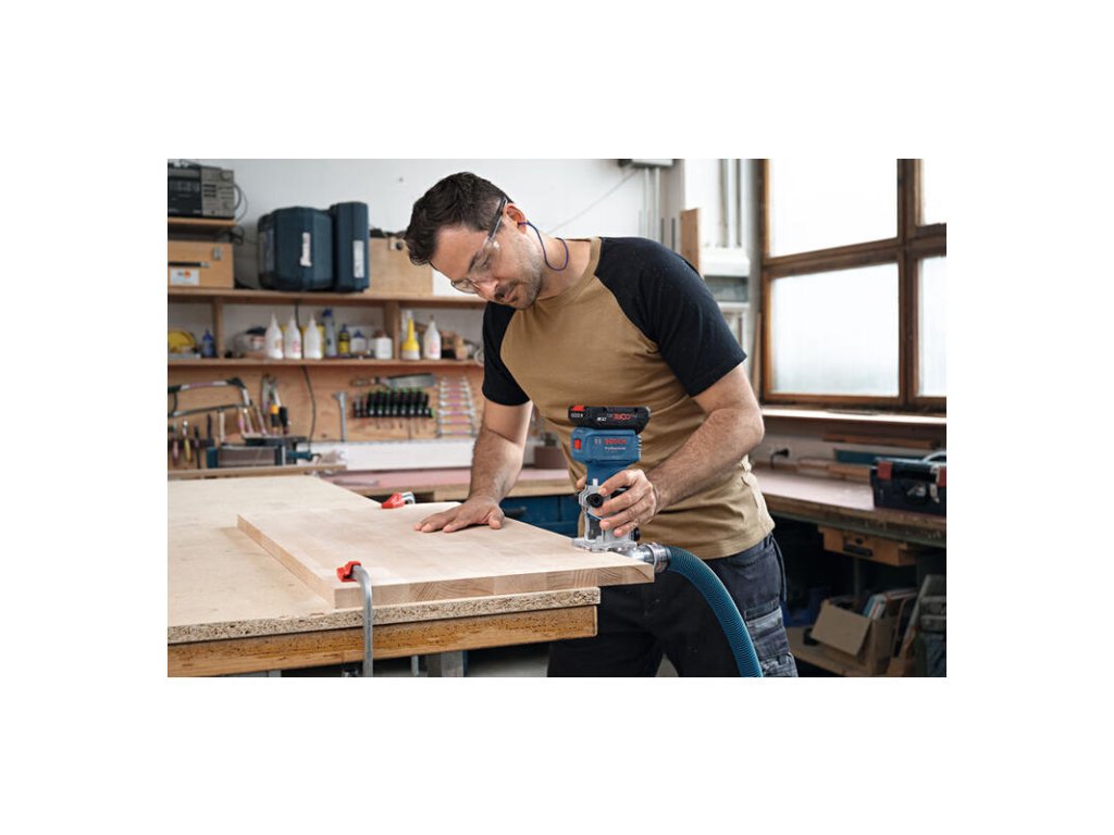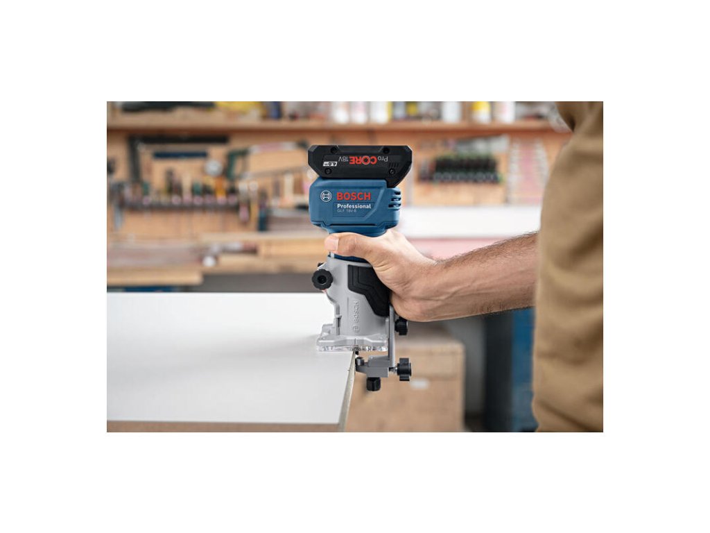 Akumulátorová horná fréza GLF 18V-8 Professional je náradím prvej voľby na frézovanie hrán, drážok, frézovanie podľa šablón a profilovanie.