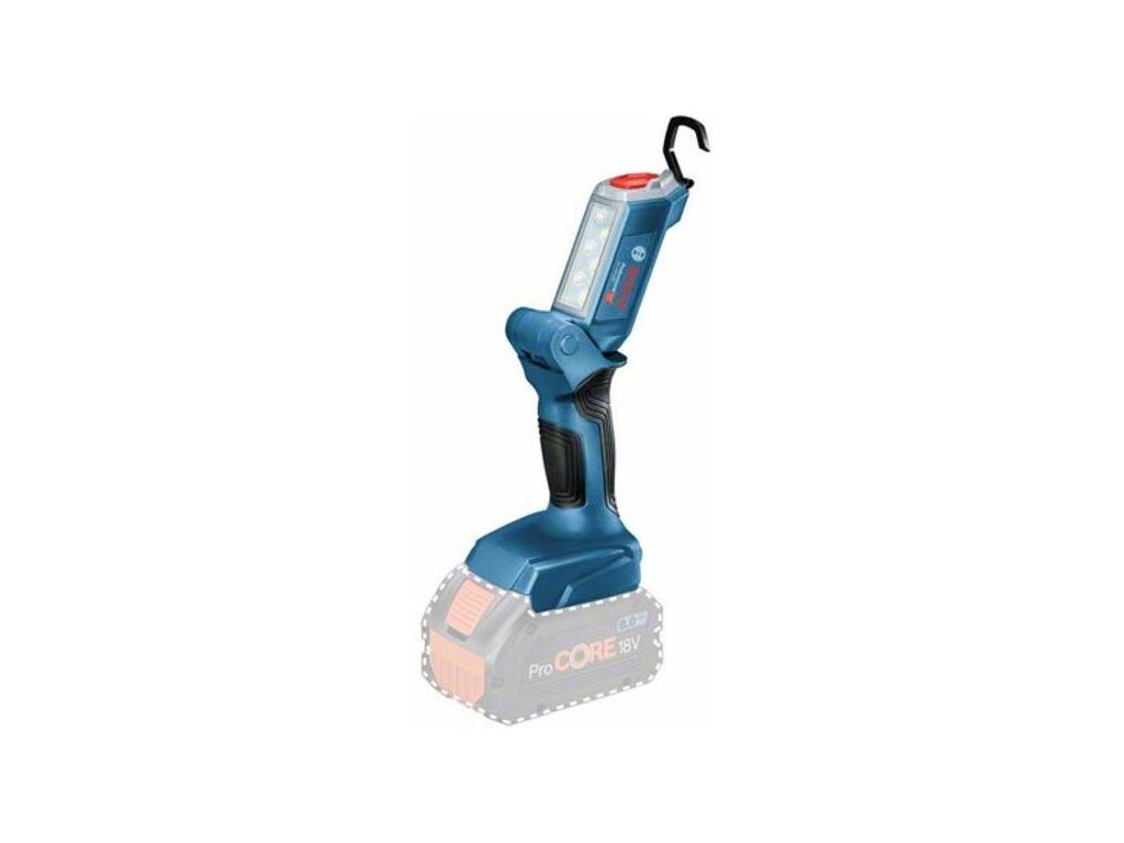 Akumulátorové pracovné svietidlo GLI 18V-300, Osvetlenie a bezpečnosť na každom mieste, Jasné osvetlenie 6 výkonnými diódami LED, Flexibilné použitie: držanie, zavesenie alebo postavenie, Nízka spotreba energie: 5 hodín trvalého osvetlenia na každú Ah