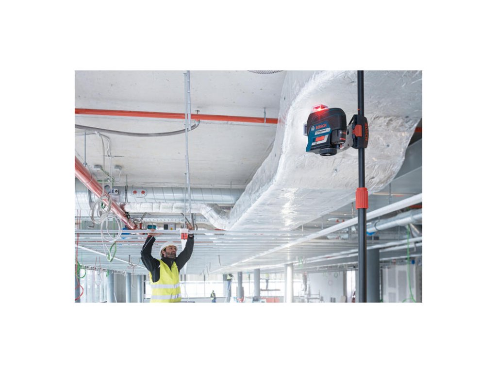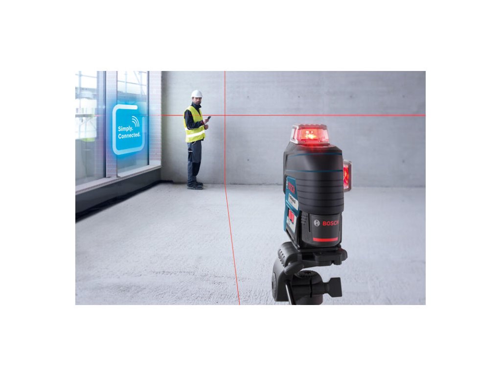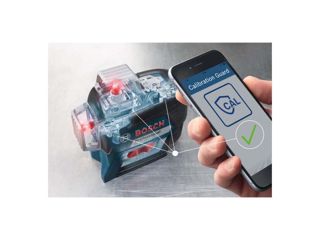 Líniový laser GLL 3-80 C, Líniový laser GLL 3-80 C Professional sa jednoducho pripája a premieta 3 línie s rozsahom 360° poskytujúce vynikajúcu viditeľnosť. Inovačné monitorovanie CAL Guard a aplikácia pre inteligentný telefón s rozhraním Bluetooth® umožňuje vzdialené ovládanie, ako aj bezkontaktné nastavenie a vysokú presnosť. Vysokovýkonné diódy zaručujú vysokú jasnosť, tri línie s rozsahom 360° umožňujú súčasné horizontálne a vertikálne vyrovnanie a mimoriadne efektívnu prácu. Tento líniový laser je určený na realizáciu podláh, montáž okien, montáž políc, kladenie odpadových potrubí, montáž konštrukcií suchej výstavby a kladenie dlažieb a obkladov. Vďaka duálnemu systému napájania je možné používať GLL 3-80 C Professional s akumulátorom 12 V Li-ion alebo bežnými alkalickými batériami. Prístroj sa ustáli na nerovných povrchoch ±4° za menej než 4 sekundy s excelentnou presnosťou ±0,2 mm/m*/** a poskytuje pracovný dosah 120 m pri použití voliteľného prijímača LR 6 alebo LR 7 Professional. Tento líniový laser je kompaktný, ľahko použiteľný a extrémne robustný. Univerzálny držiak BM 1 Professional (0.601.015.A01); L-BOXX 136 (1.600.A01.2G0); Laserová cieľová platnička; Taška