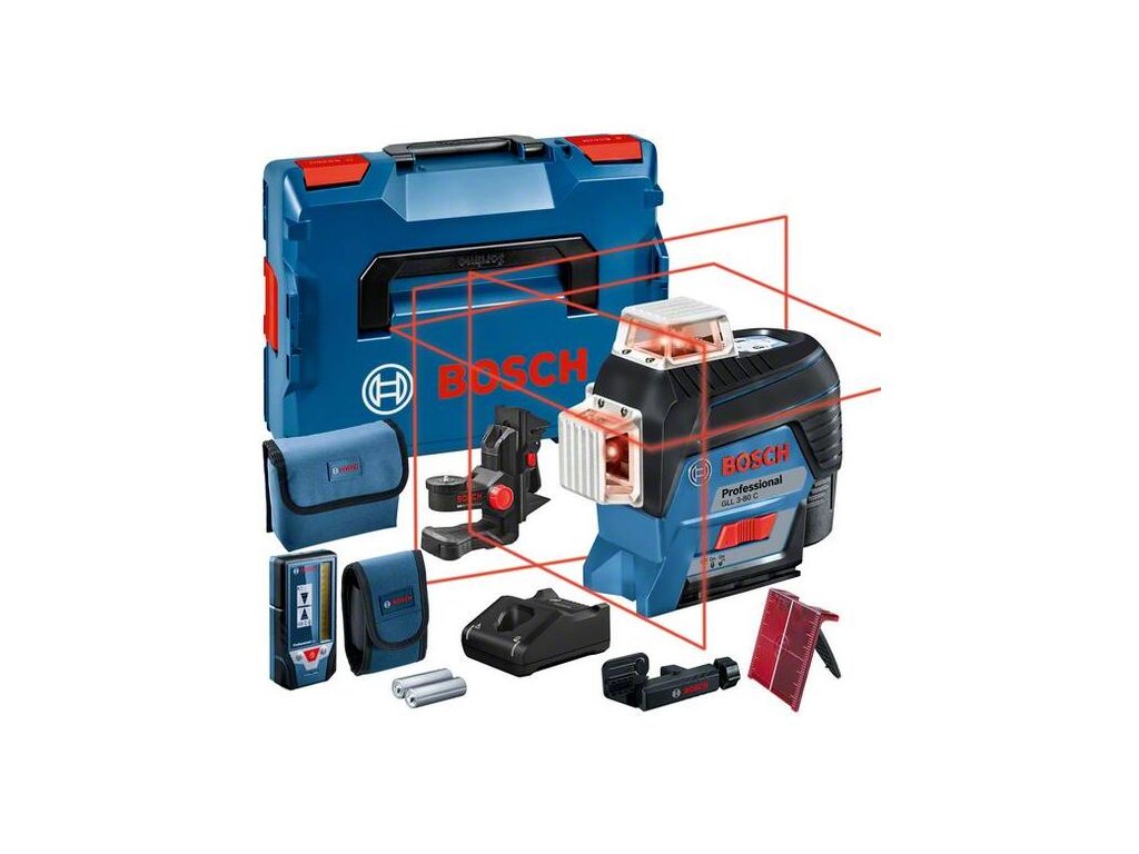 Líniový laser GLL 3-80 C, Líniový laser GLL 3-80 C Professional sa jednoducho pripája a premieta 3 línie s rozsahom 360° poskytujúce vynikajúcu viditeľnosť. Inovačné monitorovanie CAL Guard a aplikácia pre inteligentný telefón s rozhraním Bluetooth® umožňuje vzdialené ovládanie, ako aj bezkontaktné nastavenie a vysokú presnosť. Vysokovýkonné diódy zaručujú vysokú jasnosť, tri línie s rozsahom 360° umožňujú súčasné horizontálne a vertikálne vyrovnanie a mimoriadne efektívnu prácu. Tento líniový laser je určený na realizáciu podláh, montáž okien, montáž políc, kladenie odpadových potrubí, montáž konštrukcií suchej výstavby a kladenie dlažieb a obkladov. Vďaka duálnemu systému napájania je možné používať GLL 3-80 C Professional s akumulátorom 12 V Li-ion alebo bežnými alkalickými batériami. Prístroj sa ustáli na nerovných povrchoch ±4° za menej než 4 sekundy s excelentnou presnosťou ±0,2 mm/m*/** a poskytuje pracovný dosah 120 m pri použití voliteľného prijímača LR 6 alebo LR 7 Professional. Tento líniový laser je kompaktný, ľahko použiteľný a extrémne robustný. L-BOXX 136 (1.600.A01.2G0); Univerzálny držiak BM 1 Professional (0.601.015.A01); Laserová cieľová platnička; Taška; 1× akumulátor GBA 12V 2.0Ah (1.600.Z00.02X); Držiak na laserový prijímač LR 6/7 (1.608.M00.C1L); Laserový prijímač LR 7 Professional (0.601.069.J00); Rýchlonabíjačka GAL 12V-40 Professional (1.600.A01.9R3)