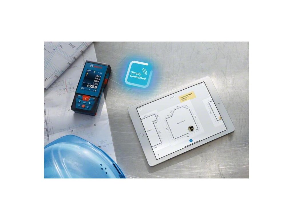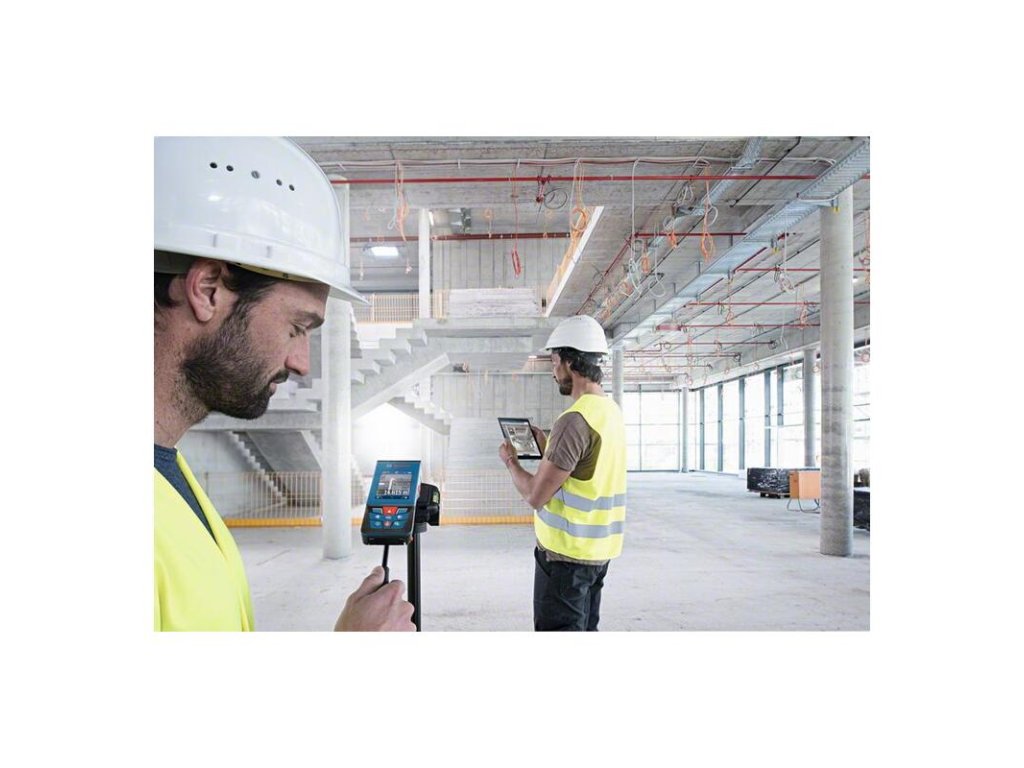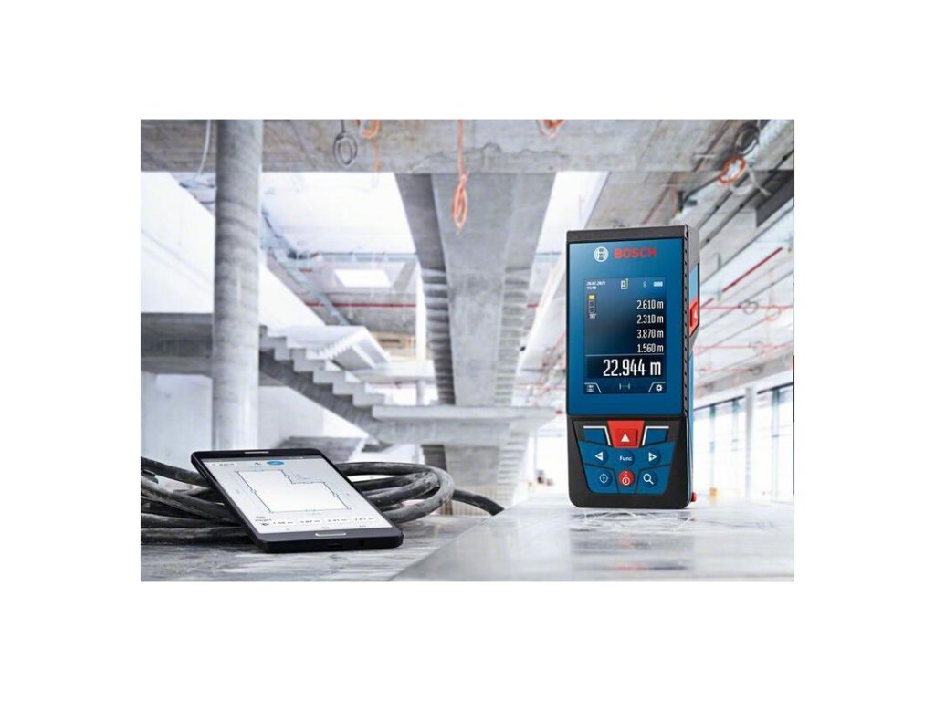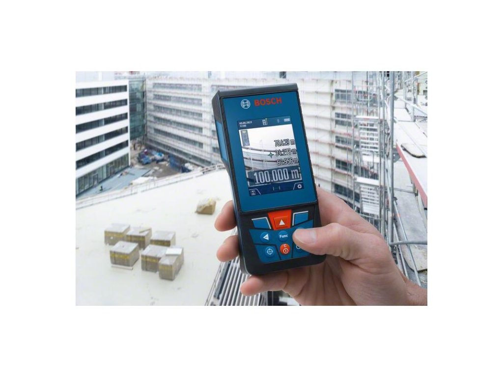 Laserový merač vzdialeností GLM 100-25 C, Tento profesionálny exteriérový laserový merač vzdialenosti je vybavený digitálnym hľadáčikom s funkciou zoomu na presné meranie na vzdialenosť až 100 m. Snímku z kamery a merania je možné ľahko zobraziť na veľkom, vysokokontrastnom farebnom displeji IPS 2,8” s možnosťou rotácie na zvislé alebo vodorovné zobrazenie. S ohľadom na komfortnú dokumentáciu je možné preniesť výsledky merania prostredníctvom rozhrania Bluetooth do aplikácie Bosch MeasureOn. Tento laserový merač vzdialenosti je ideálnym riešením na náročné staveniská vďaka ochrane proti prachu a vode IP54 a sklu displeja odolnému voči poškriabaniu. Architekti, stavbyvedúci a elektrikári ocenia možnosť použitia v exteriéri, dobrú čitateľnosť a praktickú dokumentáciu s týmto odolným laserovým meračom vzdialenosti. GLM 100-25 C Professional má používateľsky ústretové ovládacie rozhranie s klikacím kolieskom na prístup k všetkým funkciám. Užitočná možnosť pomocníka zobrazuje podrobné snímky každej funkcie merania na ľahké porozumenie údajom. Ochranné puzdro; Pútko na prenášanie; 3× batéria 1,5 V LR6 (AA)