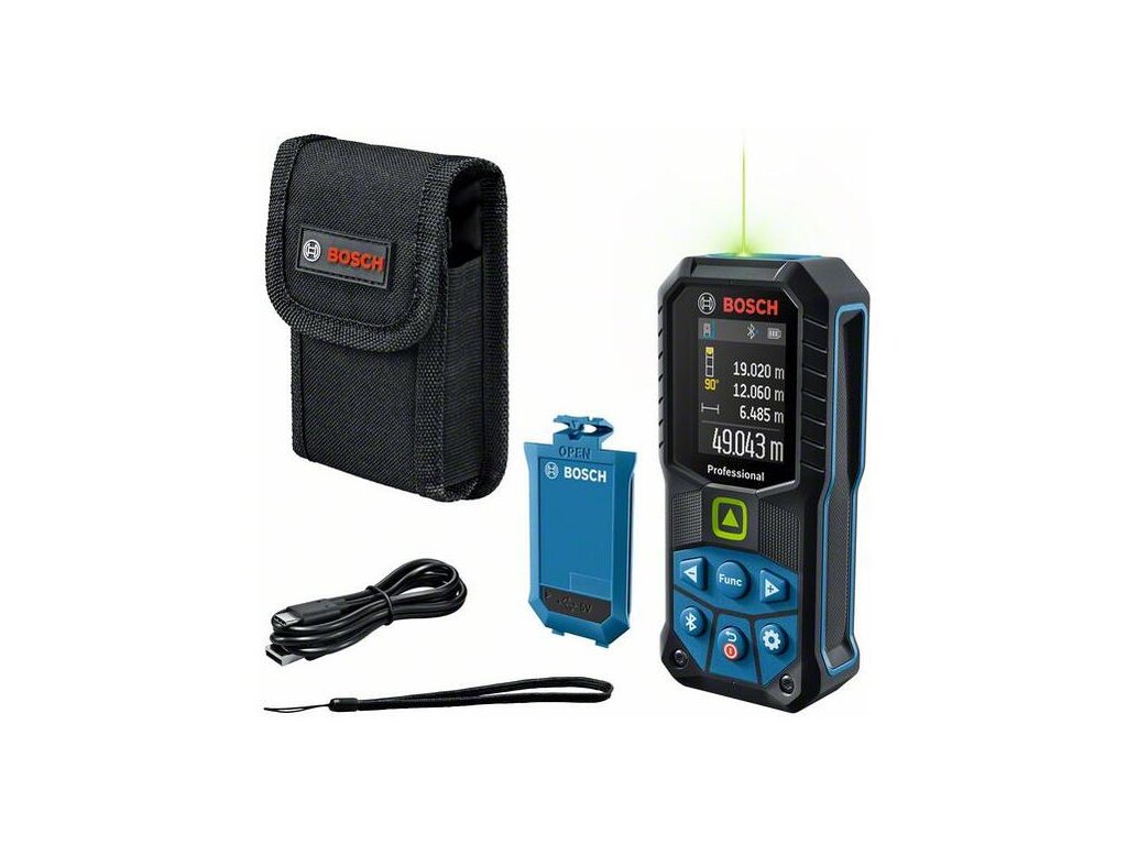 Laserový merač vzdialeností GLM 50-27 CG, Laserový merač GLM 50-27 CG Professional ponúka vynikajúcu viditeľnosť laserového bodu, vysoko odolný dizajn a rýchlu dokumentáciu. Jeho zelený laserový bod je v porovnaní s červeným laserom viditeľnejší, preto je obzvlášť vhodný pre meranie na veľké vzdialenosti vo svetlých vnútorných podmienkach. Vďaka kombinácii konštrukcií s certifikáciou ochrany IP65 a gumového krytu tlmiaceho nárazy, vydrží aj pád z 1,5 metra aj na tvrdý betón, preto je vhodný aj do drsných podmienok staveniska. Pripojenie Bluetooth® a aplikácie Bosch MeasureOn zaisťujú rýchlu dokumentáciu a bleskový prenos výsledkov merania. Tento laserový merač je optimálny pre dokumentáciu, výpočet potrieb materiálu, priestorov a stien a umiestnenie montážnych prvkov, takže je ideálny pre architektov, elektrikárov a mnoho ďalších profesií. Je vybavený zvukovou aj vibračnou spätnou väzbou, ktorá overuje úspešnosť merania a vylepšenou výdržou akumulátora (v porovnaní s predchodcom GLM 50 C Professional). Ochranné puzdro; Pútko na prenášanie; BA 3.7V 1.0Ah A a kábel USB-C™ (1.608.M00.C43)