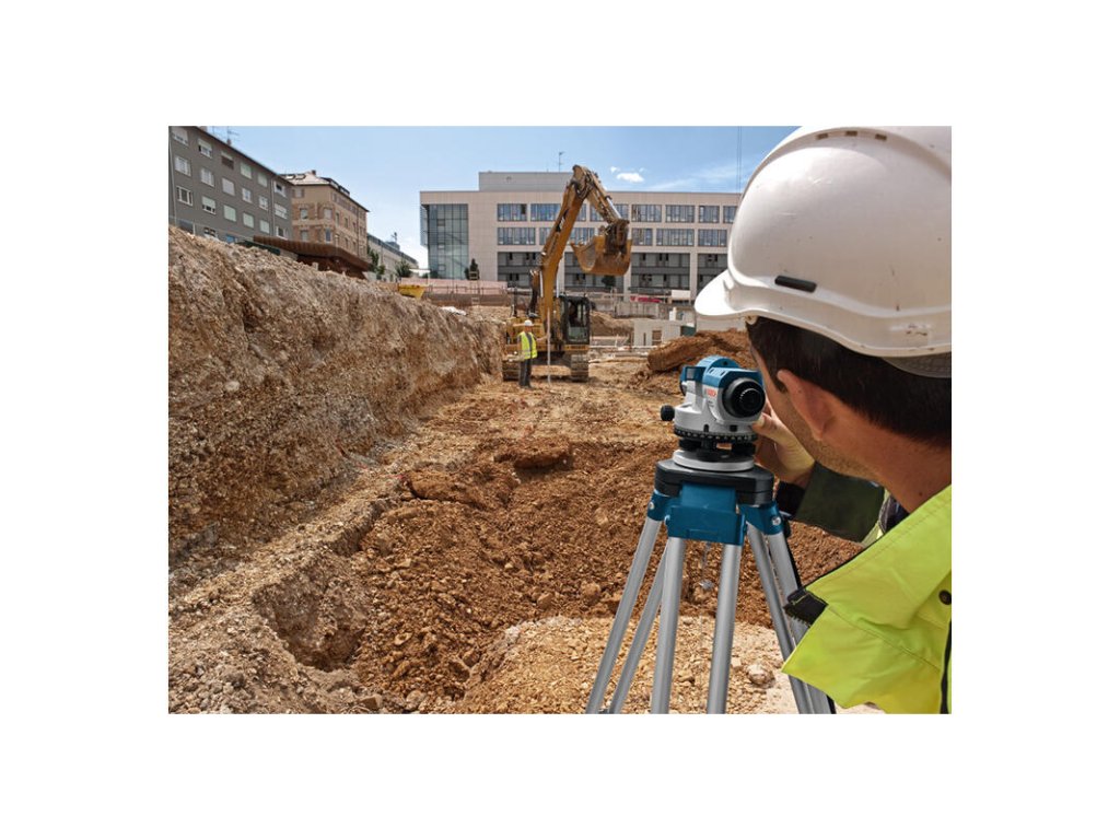 Optický nivelačný prístroj GOL 20 G, Odolný a spoľahlivý – optimálne vhodný do exteriéru, Ideálne na použitie v exteriéri vďaka robustnému krytu s ochranou proti prachu a striekajúcej vode (IP 54), Objektív s veľkou svetelnosťou pre ostrý obraz cieľa, Bezpečná preprava vďaka blokovaciemu zariadeniu kompenzátora, Ochrana na šošovku; Nastavovací tŕň; Olovnica; Kufor na prenášanie (1.600.A00.0LF); Stavebný statív BT 160 Professional (0.601.091.200); Meracia lata GR 500 Professional (0.601.094.300)