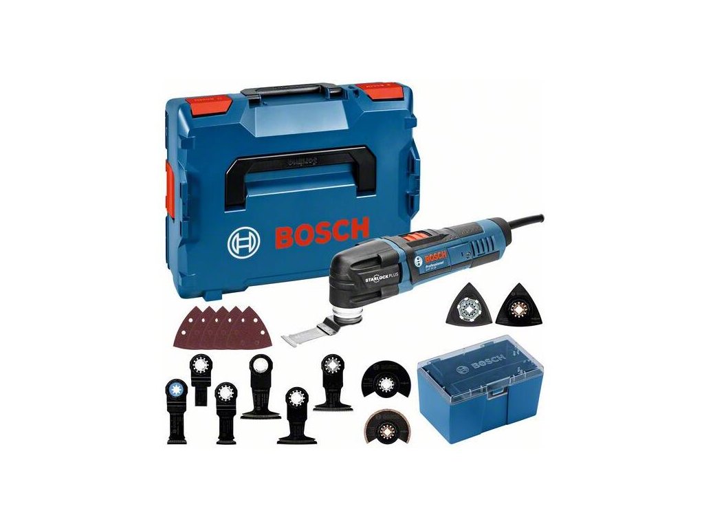 Multifunkčná píla GOP 30-28, Univerzálne náradie – jednoducho zvládnuté projekty, Náradie kategórie StarlockPlus pre rýchlejšie napredovanie v práci, Magnetické rozhranie na jednoduchú výmenu nástrojov, 1× Starlock BIM pílový list na rezy so zanorením AII 65 APB, Curved-Tec, Wood + Metal (2.608.661.781); 1× Starlock BIM pílový list na rezy so zanorením AII 65 BSPB, Curved-Tec, Hard Wood (2.608.662.017); 1× Starlock BIM pílový list na rezy so zanorením AIZ 20 AB, Wood + Metal (2.608.661.640); 1× Starlock BIM pílový list na rezy so zanorením AIZ 32 APB, Wood + Metal, Curved-Tec (2.608.661.644); 1× Starlock BIM segmentový pílový list ACZ 85 EB, Wood + Metal (2.608.661.636); 1× Starlock karbidová brúsna doska s karbidovými zrnami AVZ 78 RT2, Grout + Abrasive (2.608.661.648); 1× StarlockPlus BIM pílový list na rezy so zanorením PAII 65 APB, Curved-Tec, Wood + Metal (2.608.662.564); 1× Starlock segmentový pílový list s karbidovými zrnami ACZ 85 RT3, Grout + Abrasive (2.608.661.642); 1× StarlockPlus BIM pílový list na rezy so zanorením PAIZ 32 APB, Curved-Tec, Wood + Metal (2.608.662.558); 1× StarlockPlus karbidový pílový list na rezy so zanorením PAIZ 32 AT, Metal (2.608.662.555); 5× brúsne listy, K 2x80, 2x120, 1x240 (2.608.621.104); 1× Starlock brúsna doska v tvare delta AVZ 93 G (2.608.000.493); L-BOXX 136 (1.600.A01.2G0)