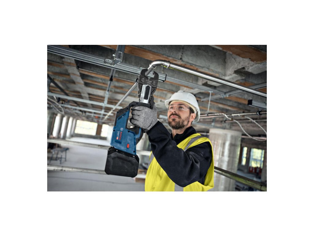 Toto náradie zvládne rúry s rozličnými priemermi vďaka kompatibilite s kompaktnými lisovacími čeľusťami Bosch, kompaktnými lisovacími čeľusťami systému R alebo schválenými lisovacími čeľusťami Bosch.