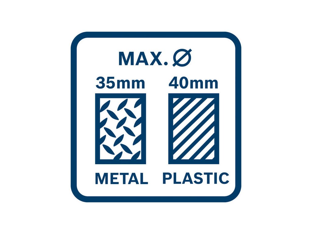 Maximálny rozsah lisovania plastových rúr je 40 mm a kovových rúr 35 mm.