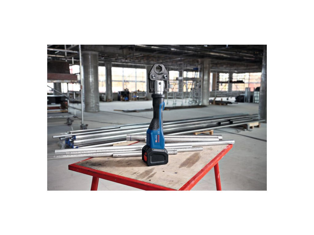 Toto náradie zvládne rúry s rozličnými priemermi vďaka kompatibilite so štandardnými lisovacími čeľusťami Bosch, štandardnými lisovacími čeľusťami systému R alebo schválenými lisovacími čeľusťami Bosch.