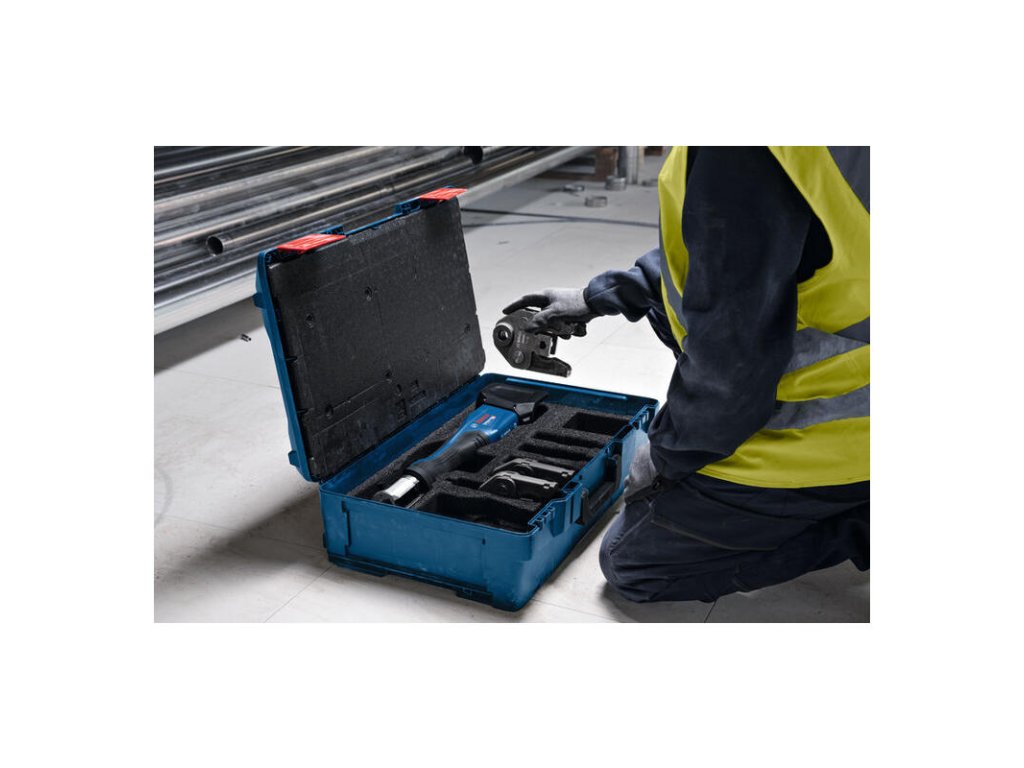 Toto náradie zvládne rúry s rozličnými priemermi vďaka kompatibilite so štandardnými lisovacími čeľusťami Bosch, štandardnými lisovacími čeľusťami systému R alebo schválenými lisovacími čeľusťami Bosch.