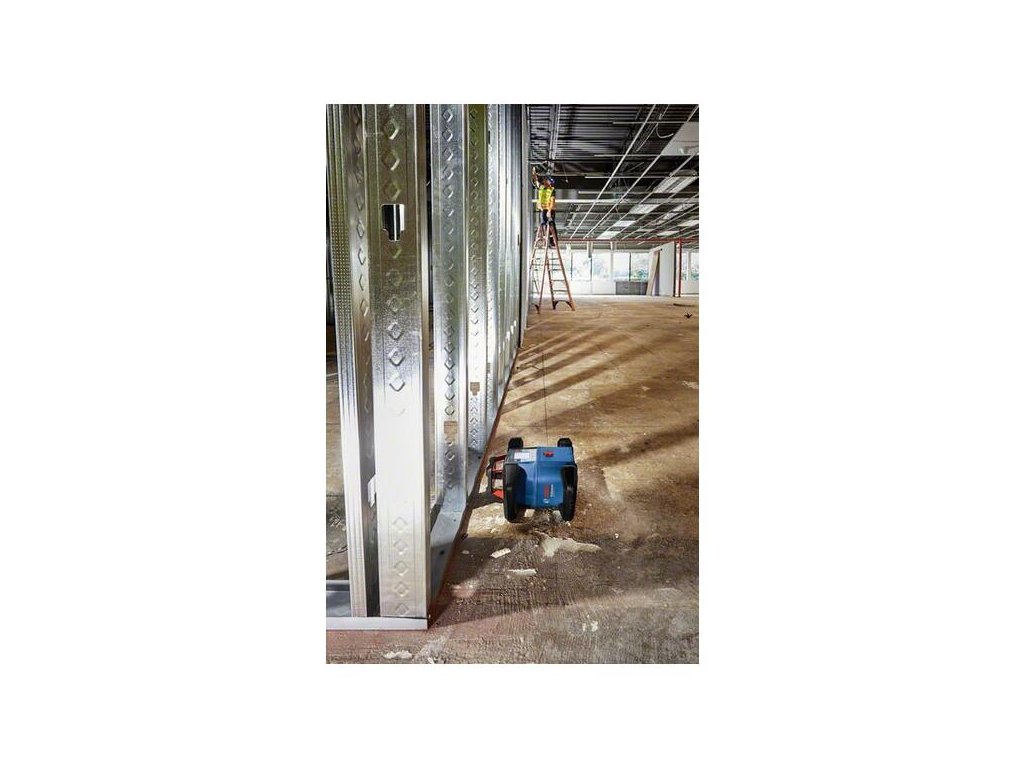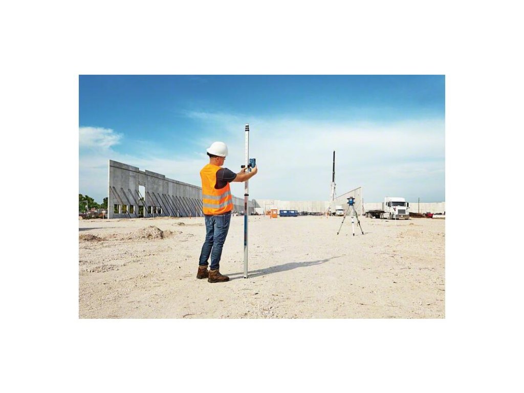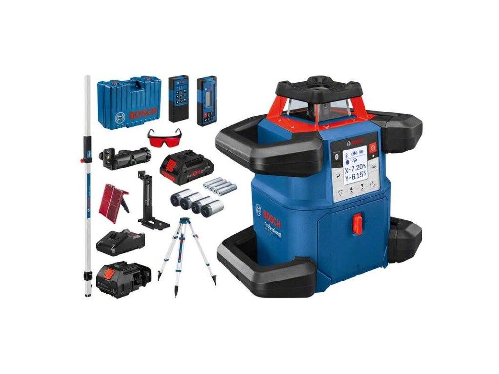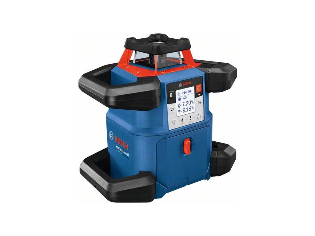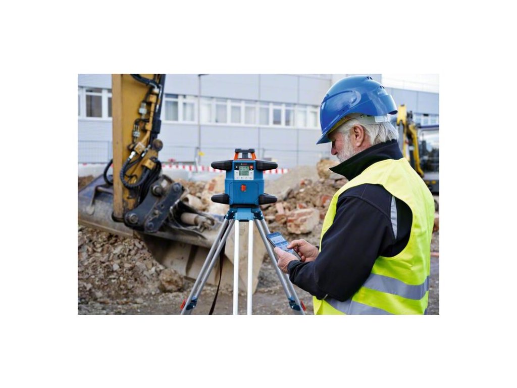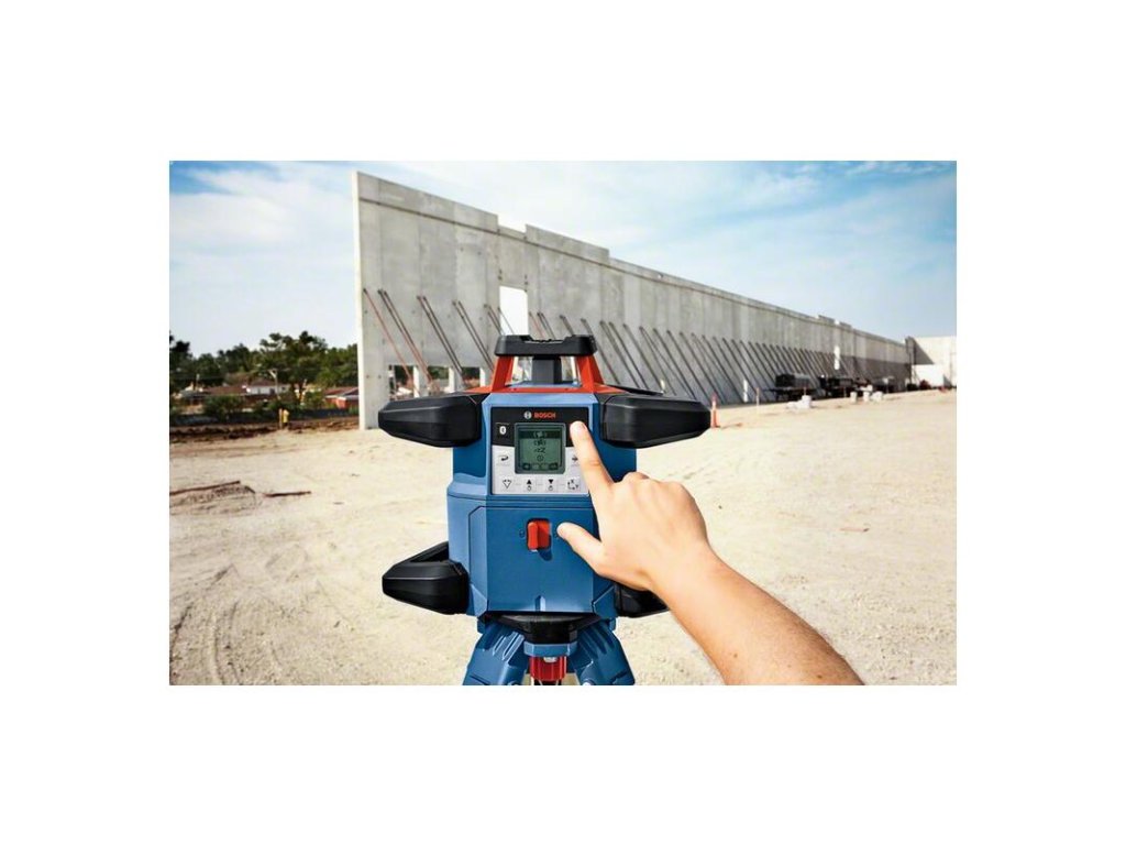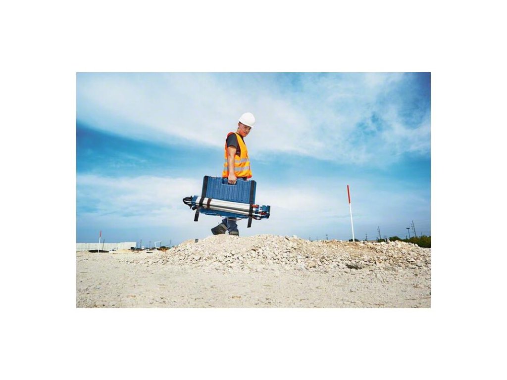 Rotačný laser GRL 600 CHV, Náročné pracovné podmienky – robustný prístroj GRL 600 CHV Professional zvládne aj tie najnáročnejšie prostredia. Odolná konštrukcia poskytuje ochranu pred nárazmi a trieda ochrany IP68 chráni pred prachom a vodou, a to vrátane priestoru na akumulátor, vďaka čomu zaručuje mimoriadne flexibilnú prácu aj v zhoršených poveternostných podmienkach. Ponúka praktickú konektivitu, umožňuje sústredenejšiu prácu a lepšiu časovú efektivitu. Ovládanie prístroja je intuitívne vďaka displeju a prístupu k aplikácii na vzdialenú nivelizáciu, ktorá vizualizuje všetky funkcie vrátane nastavenia dvojitého sklonu a ušetrí vám cenný čas. Tento veľmi presný laser ponúka dlhú dobu prevádzky a možnosť nepretržitej práce, a to vďaka systému akumulátora 18 V alebo použitím dodaných alkalických batérií. Tento prístroj je určený na používanie v exteriéri pri meraní výkopových a násypových prác, debnenia na betón, krajinárskych a fasádnych prác. GRL 600 CHV je takisto vybavený vysokokvalitným prijímačom s prijímacou plochou veľkosti 125 mm, obojstranným displejom a funkciou offsetu v milimetroch. Kalibrácia náradia je rýchla a jednoduchá – postupujte podľa jednotlivých pokynov prostredníctvom intuitívnej aplikácie, ktorá vám ušetrí čas a zdroje a zaručí presné výsledky pri každej práci. Praktický „maskovací režim“ dostupný v aplikácii zabraňuje odrazom a interferenciám s inými zariadeniami na pracovisku. Laserový prijímač LR 60 Professional (0.601.069.P00); Držiak prijímača RB 60 Professional; Diaľkové ovládanie RC 6 Professional; 1× akumulátor ProCORE18V 4.0Ah (1.600.A01.6GB); Rýchlonabíjačka GAL 18V-40 Professional (1.600.A01.9RJ); Akumulátorový adaptér BA 1 Professional; Nástenný držiak WM 6 Professional; 4× batéria LR20 1,5 V (D); 4× batéria 1,5 V LR6 (AA); Laserová cieľová platnička; Okuliare na sledovanie laserového lúča, červené, BL-GLASS (katalógové číslo 1.608.M00.05B); Kufor na prenášanie; Stavebný statív BT 170 HD Professional (0.601.091.300); Meracia lata GR 240 Professional (0.601.094.100)