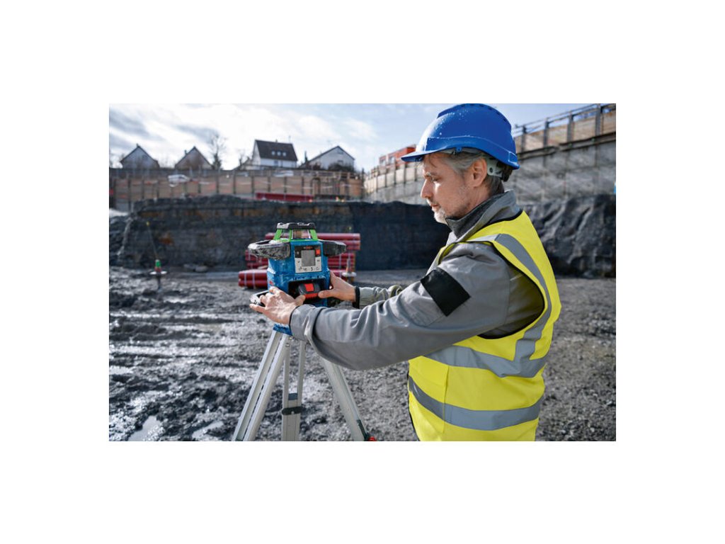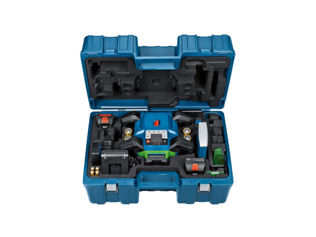 Rotačný laser GRL 650 CHVG, Odolný rotačný laser GRL 650 CHVG Professional s konektivitou Bluetooth® poskytuje pri nivelácii na stavenisku novú úroveň presnosti a efektivity. Technológia zeleného lasera poskytuje vyššiu viditeľnosť v rozličných svetelných podmienkach. Rotačný laser má pevnú konštrukciu, ktorá odolá používaniu v náročných podmienkach na stavenisku a zlému počasiu, zvládne prevrátenie na statíve z výšky 2 metrov a spĺňa normy ochrany pred prachom a vodou na úrovni IP68. Používanie aplikácie Levelling Remote na sledovanie nastavení a diaľkové ovládanie šetrí čas a umožňuje maximálne sústredenie na prácu. Všestranný prístroj GRL 650 CHVG Professional je najlepší na niveláciu a budovanie stupňov v exteriéri, ako aj montáž priečok, stropov a systémov vykurovania, vetrania a klimatizácie. Komfort dlhej prevádzky vďaka možnosti duálneho napájania, ktoré využíva nabíjateľný akumulátor Bosch Li-ion triedy 18 V alebo alkalické batérie typu D. Optimálny komfort vďaka špičkovým technologickým funkciám, ako napr. displej, dvojitý sklon, pamäť sklonu a vysokokvalitný prijímač (LR 65 G Professional). Laserový prijímač LR 65 G Professional (0.601.069.T00); Držiak prijímača RB 60 Professional; Diaľkové ovládanie RC 6 Professional; 1× akumulátor ProCORE18V 4.0Ah (1.600.A01.6GB); Rýchlonabíjačka GAL 18V-40 Professional (1.600.A01.9RJ); Akumulátorový adaptér BA 1 Professional; Nástenný držiak WM 6 Professional; 4× batéria LR20 1,5 V (D); 4× batéria 1,5 V LR6 (AA); Laserová cieľová platnička; Okuliare na sledovanie laserového lúča (zelené) (katalógové číslo 1.608.M00.05J); Kufor na prenášanie; Stavebný statív BT 170 HD Professional (0.601.091.300); Meracia lata GR 500 Professional (0.601.094.300)