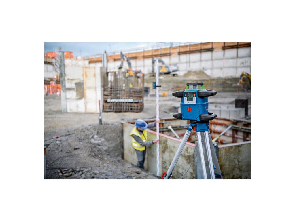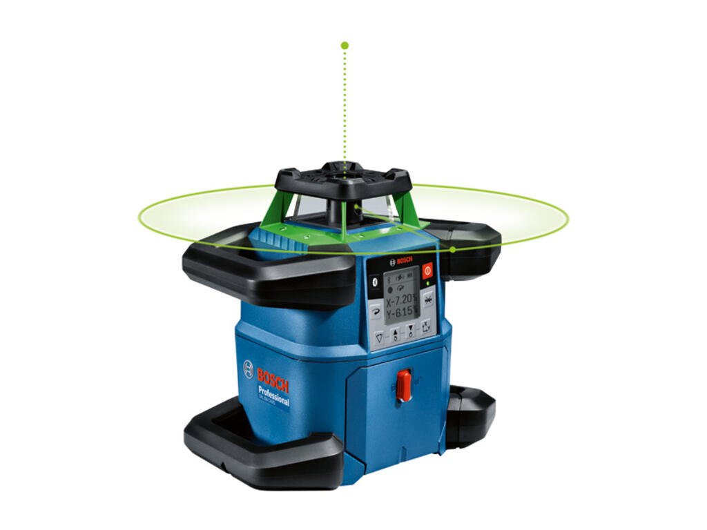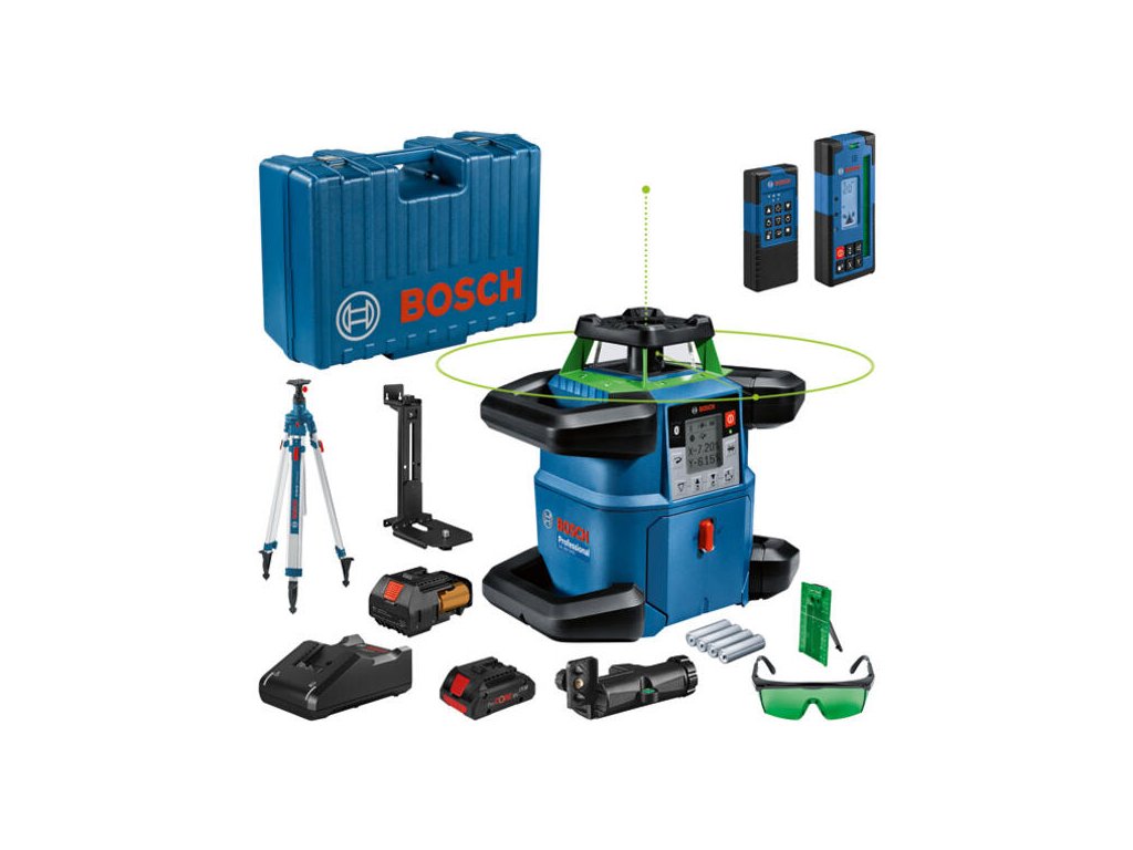 Rotačný laser GRL 650 CHVG, Odolný rotačný laser GRL 650 CHVG Professional s konektivitou Bluetooth® poskytuje pri nivelácii na stavenisku novú úroveň presnosti a efektivity. Technológia zeleného lasera poskytuje vyššiu viditeľnosť v rozličných svetelných podmienkach. Rotačný laser má pevnú konštrukciu, ktorá odolá používaniu v náročných podmienkach na stavenisku a zlému počasiu, zvládne prevrátenie na statíve z výšky 2 metrov a spĺňa normy ochrany pred prachom a vodou na úrovni IP68. Používanie aplikácie Levelling Remote na sledovanie nastavení a diaľkové ovládanie šetrí čas a umožňuje maximálne sústredenie na prácu. Všestranný prístroj GRL 650 CHVG Professional je najlepší na niveláciu a budovanie stupňov v exteriéri, ako aj montáž priečok, stropov a systémov vykurovania, vetrania a klimatizácie. Komfort dlhej prevádzky vďaka možnosti duálneho napájania, ktoré využíva nabíjateľný akumulátor Bosch Li-ion triedy 18 V alebo alkalické batérie typu D. Optimálny komfort vďaka špičkovým technologickým funkciám, ako napr. displej, dvojitý sklon, pamäť sklonu a vysokokvalitný prijímač (LR 65 G Professional). Laserový prijímač LR 65 G Professional (0.601.069.T00); Držiak prijímača RB 60 Professional; Diaľkové ovládanie RC 6 Professional; 1× akumulátor ProCORE18V 4.0Ah (1.600.A01.6GB); Rýchlonabíjačka GAL 18V-40 Professional (1.600.A01.9RJ); Akumulátorový adaptér BA 1 Professional; Nástenný držiak WM 6 Professional; 4× batéria LR20 1,5 V (D); 4× batéria 1,5 V LR6 (AA); Laserová cieľová platnička; Okuliare na sledovanie laserového lúča (zelené) (katalógové číslo 1.608.M00.05J); Kufor na prenášanie; Stavebný statív BT 300 HD Professional (0.601.091.400)