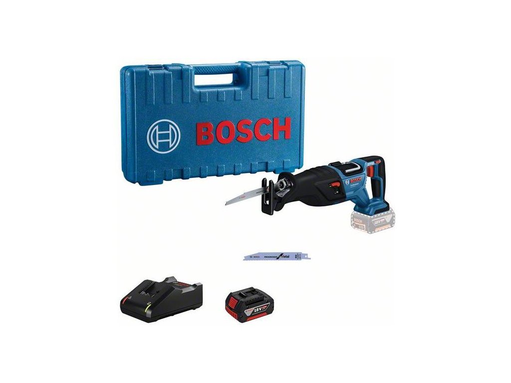 Akumulátorová chvostová píla BITURBO GSA 185-LI, Vďaka technológii bezuhlíkového motora Bosch ponúka GSA 185-LI akumulátorový rezný výkon prekonávajúci očakávania – zodpovedá výkonu elektrickej chvostovej píly triedy 1 100 W. GSA 185-LI má vynikajúci pomer výkonu k hmotnosti, vďaka čomu sa s ňou pracuje ľahšie a menej vyčerpávajúco v akejkoľvek polohe. Beznástrojová funkcia navyše umožňuje jednoduché vloženie alebo vybratie pílového listu jednou rukou. GSA 185-LI je ideálna na búracie práce s rozmanitými materiálmi, ako napr. kovom, plastom a izolačnými materiálmi. Je kompatibilná s profesionálnym 18 V systémom Bosch. GSA 185-LI je vynikajúco prispôsobená na rezanie v blízkosti stien v kolmej vertikálnej polohe. Jej ergonomická konštrukcia disponuje zaoblenou vrchnou časťou rukoväti, ktorá komfortne podporuje rozmanité uchopenie. Rýchlosť možno ľahko a variabilne prispôsobiť tlačidlom spúšte. Chvostová píla sa dodáva s pripojiteľným háčikom na stabilné zavesenie náradia. 1× pílový list do chvostovej píly S 123 XF, Progressor for Metal (dostupný samostatne ako súprava 2 kusov: 2.608.654.416); 1× pílový list do chvostovej píly S 2345 X, Progressor for Wood (dostupný samostatne ako súprava 2 kusov: 2.608.654.417); 1 akumulátor GBA 18V 5.0Ah (2.607.337.069); Rýchlonabíjačka GAL 18V-40 Professional (2.607.226.251); Kufor na prenášanie
