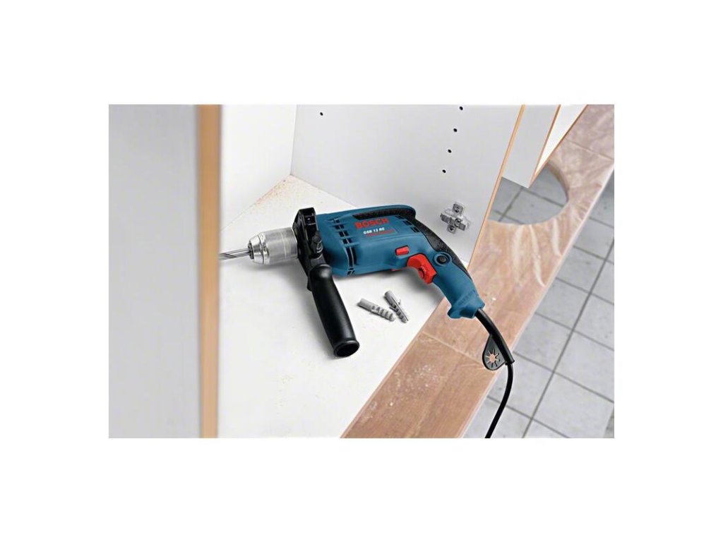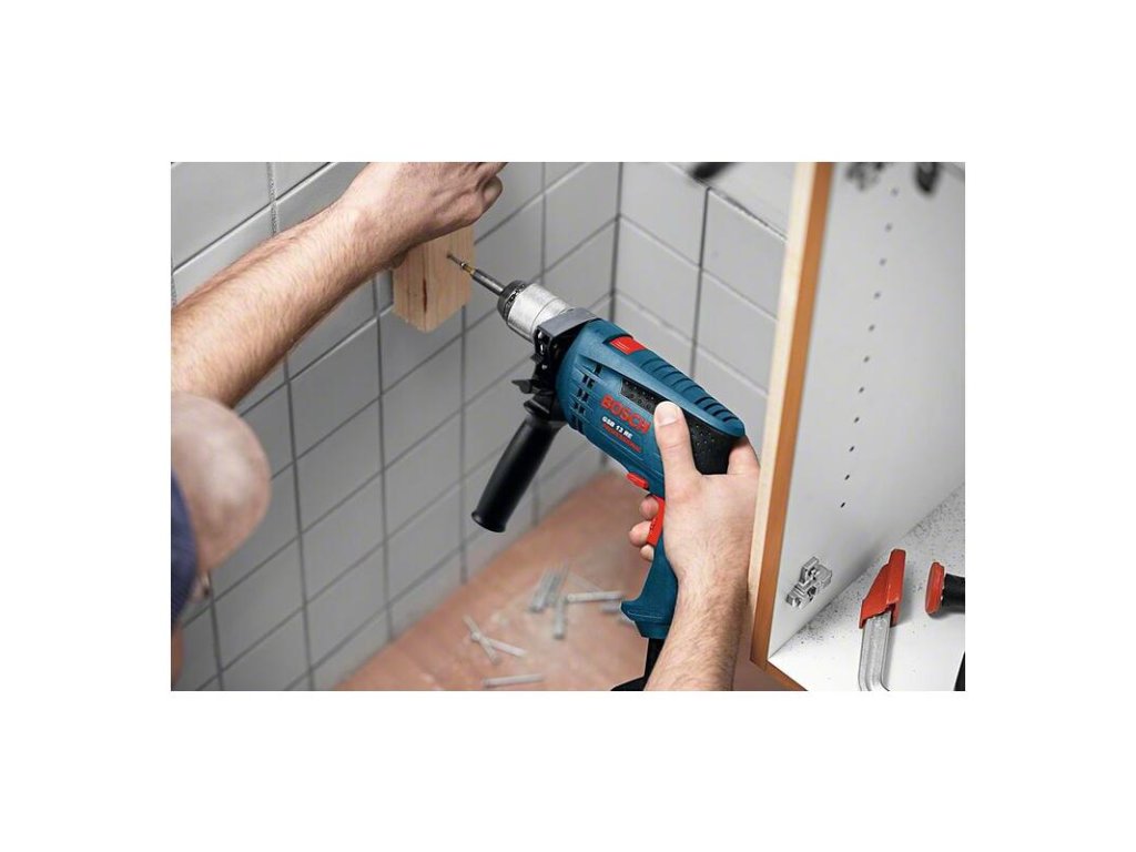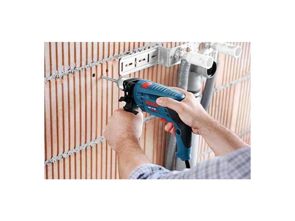 Príklepová vŕtačka GSB 13 RE, GSB 13 RE Professional je kompaktná elektrická 1-stupňová príklepová vŕtačka základnej triedy. Konštrukcia s hmotnosťou len 1,8 kg a malé kompaktné telo náradia umožňujú praktickú manipuláciu a manévrovateľnosť. Takisto je mimoriadne odolná a má odolné kovové rýchloupínacie skľučovadlo. Táto príklepová vŕtačka navyše poskytuje profesionálne výsledky v optimálnej cenovej hladine. Toto náradie je určené na vŕtanie do betónu, kameňa a muriva. Hĺbkový doraz 210 mm (2.603.001.019); Rýchloupínacie skľučovadlo 13 mm (2.608.572.149)