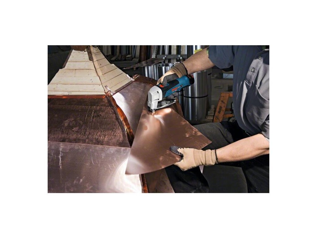 Akumulátorové nožnice na plech GSC 12V-13, Až 4x rýchlejšie pri strihaní kovov – bez námahy, Až 4-krát rýchlejšie pri rovných rezoch a rezoch v krivkách ako bežné ručné nožnice na plech, Extrémne výkonné: bez problémov zvládnu rezy do kovov až do hrúbky 1,3 mm, Neprekonateľne ľahké (iba 1,4 kg) s najkompaktnejším tvarom pre pohodlnú a neunavujúcu prácu, Rýchlonabíjačka GAL 12V-40 Professional (1.600.A01.9R3); Šesťhranný kolíkový kľúč; L-BOXX 102 (1.600.A01.2FZ); 1/1 vložka pre L-BOXX náradie a nabíjačka (1.600.A00.2V0); 2× akumulátory GBA 12V 2.0Ah (1.600.Z00.02X); 1× vrchná a spodná čepeľ do nožníc na plech (2.608.635.243)