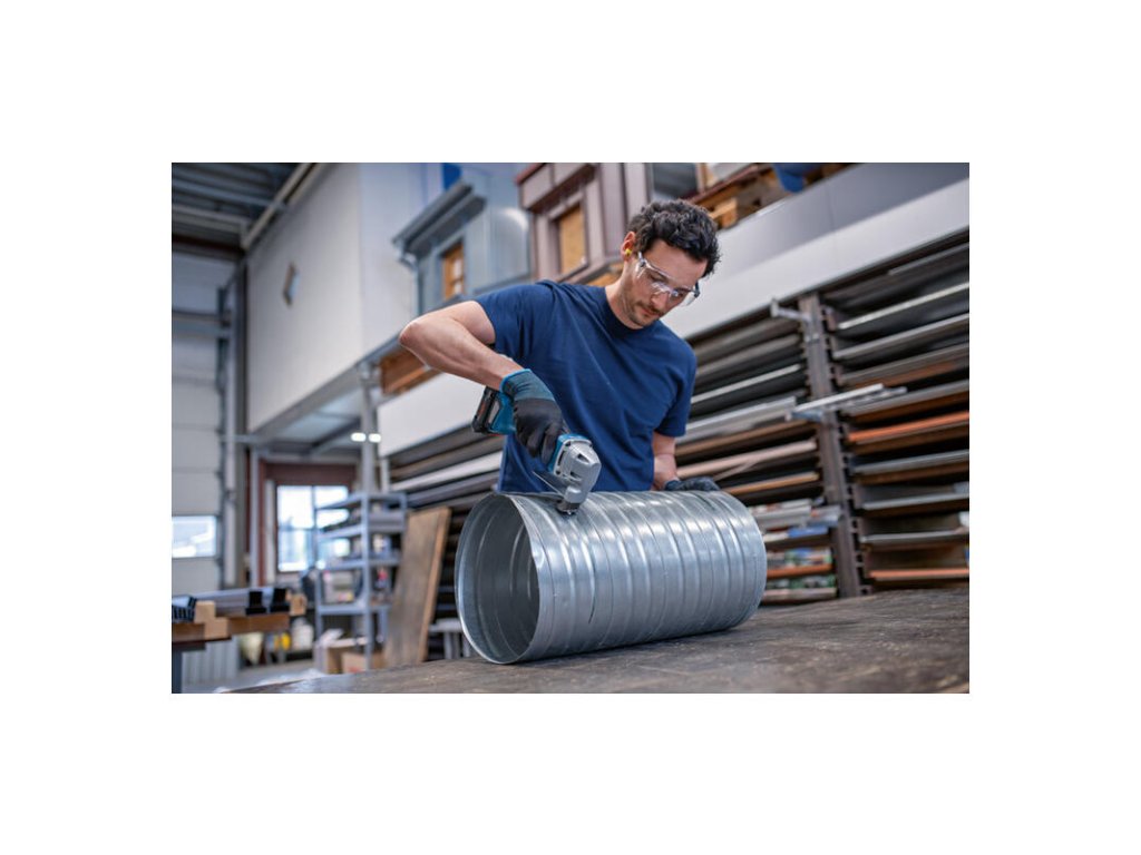 - Výkonné rezanie kovu, ktoré zodpovedá výkonu elektrického náradia triedy 700 W, vďaka vysoko efektívnej technológii bezuhlíkového motora