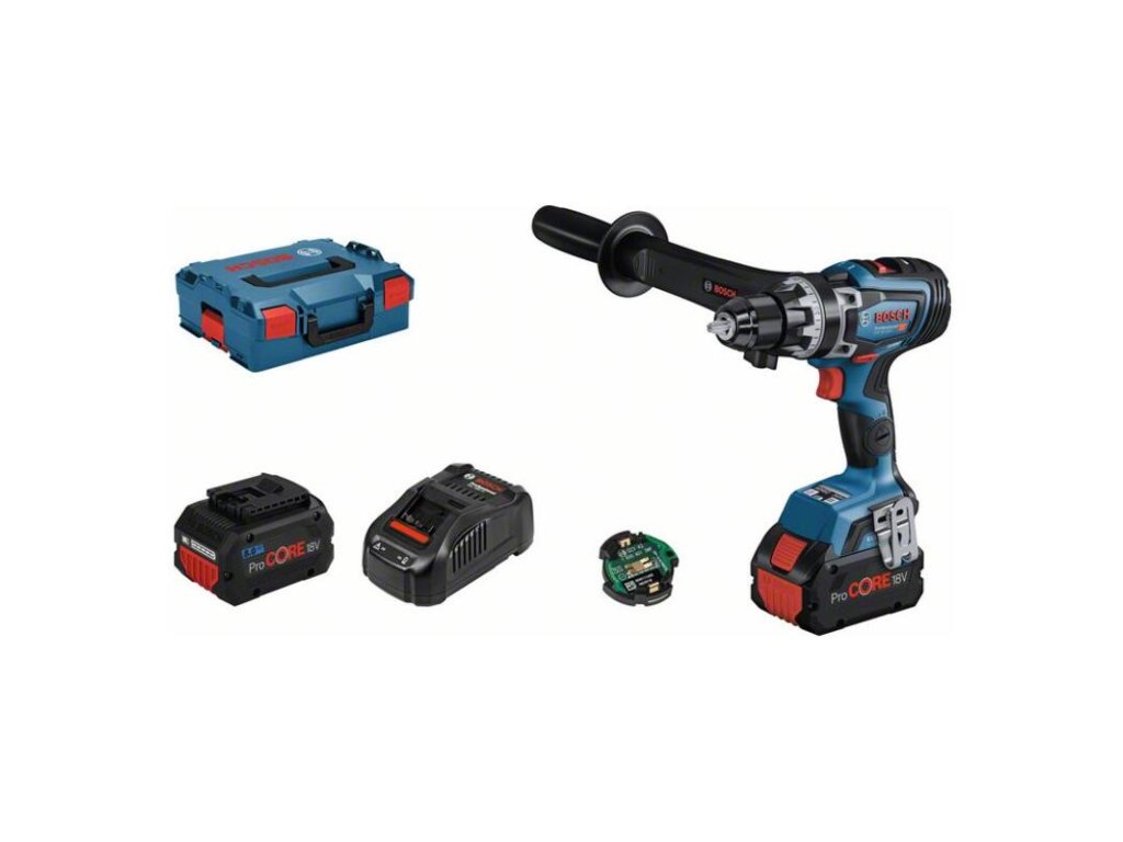 Akumulátorový vŕtací skrutkovač GSR 18V-150 C, GSR 18V-150 C Professional je inteligentný vŕtací skrutkovač s bezkonkurenčným výkonom a ovládaním na široký rozsah skrutkovacích a vŕtacích prác. Je vynikajúcim náradím na extrémne rýchlu prácu vďaka mimoriadne výkonným akumulátorom ProCORE18V a bezuhlíkovému motoru s technológiou BITURBO; ponúka maximálny krútiaci moment 150 Nm. Presná funkcia Electronic Angle Detection vždy zaručí správny uhol dlhých skrutiek a vypínateľná funkcia KickBack Control na prácu s vykružovacími pílami znižuje riziko náhleho rázu pri zaseknutí nástroja. Vďaka kovovému skľučovadlu a kovovej prevodovke je tento vŕtací skrutkovač extrémne spoľahlivý a robustný pri každej práci. GSR 18V-150 C Professional dosahuje optimálne výsledky pri skrutkovaní a vŕtaní do dreva a kovu, a to najmä pri vŕtaní väčších priemerov, napr. s vykružovacími pílami priemeru až 102 mm. Prídavná rukoväť (1.602.025.07Y); 2× akumulátor ProCORE18V 8.0Ah (1.600.A01.93N); 1× modul Bluetooth Low Energy GCY 42 Professional (1.600.A01.3WF); Rýchlonabíjačka GAL 1880 CV (1.600.A00.B8G); L-BOXX 136 (1.600.A01.2G0); Vložka L-BOXX na náradie