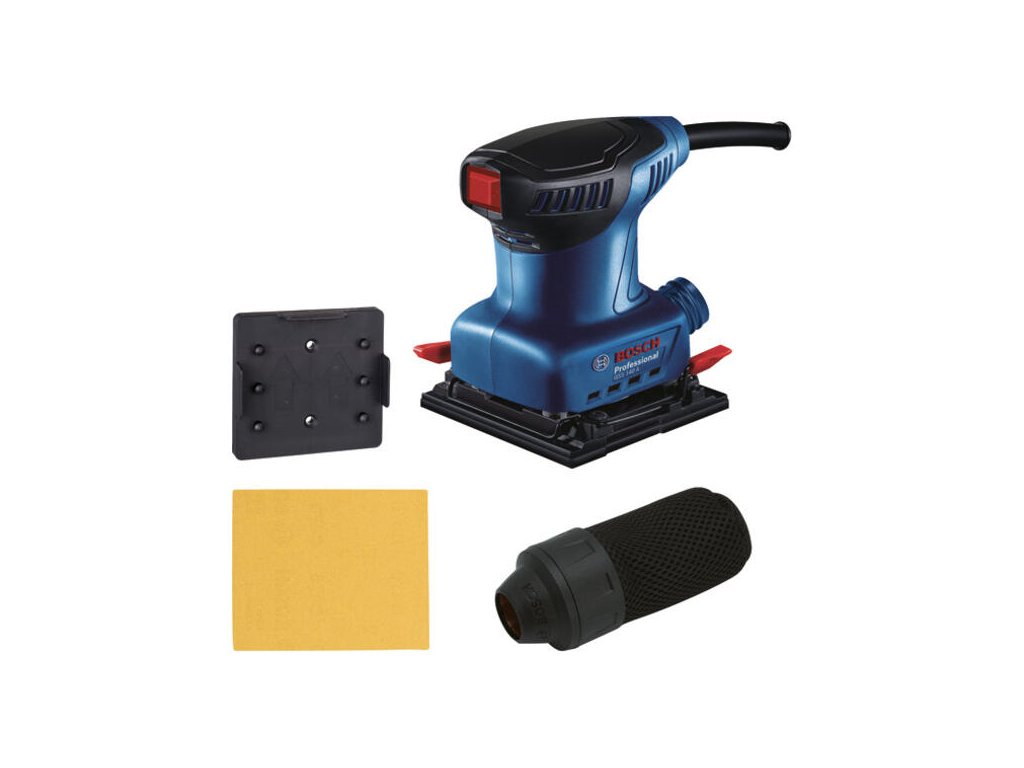 Vibračná brúska GSS 140 A, Mimoriadne efektívne brúsenie je teraz omnoho efektívnejšie vďaka vibračnej brúske Bosch GSS 140 Professional. Toto praktické náradie poskytuje vysokú rýchlosť úberu materiálu vďaka výkonnému motoru triedy 220 W a je ideálne na náročné brúsenie. Je špeciálne navrhnuté na zaistenie vyššieho komfortu a menšej únavy pri brúsení. Dochádza k menšiemu tŕpnutiu ruky vďaka veľmi nízkej hodnote vibrácií do 3,4 m/s2 a viaceré možnosti uchopenia zaručujú ľahšiu prácu aj pri brúsení nad hlavou. Táto vibračná brúska je ideálna pre tesárov, montérov sadrokartónu alebo omietkarov, ako aj profesie pracujúce s drevom. Je to preferované náradie na mimoriadne efektívne brúsenie a optimálny komfort pri práci s drevom, drevenými materiálmi alebo omietkami. 1× vrecko na prach (1.619.PC1.337); 1× dierovacia doska (1.619.PC1.202); 1× brúsny papier C411, Standard for Wood and Paint, zrnitosť 120