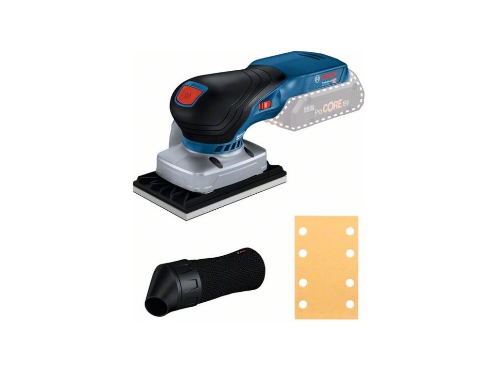 Akumulátorová vibračná brúska GSS 18V-13, Brúska GSS 18V-13 Professional ponúka optimálne ovládanie na väčších povrchoch. Je to vďaka excelentnému vyváženiu náradia a ťažisku blízko obrobku a vynikajúcej ergonómii dlaňovej opierky a úchopu. Bezuhlíkový motor a profesionálny 18 V systém Bosch zaručujú rýchlu prácu; odporúča sa používať akumulátor ProCORE18V 4.0Ah. Umožňuje jednoduché ovládanie vďaka intuitívnemu konceptu a systému vymeniteľných brúsnych dosák. Brúska GSS 18V-13 Professional je určená ná základné brúsenie, priebežné brúsenie, odstraňovanie náterov a záverečné spracovanie povrchov. Možno ju použiť na drevo, dyhu, nátery, tmely, ako aj minerálne či akrylové povrchy. Je kompatibilná so systémom na odsávanie prachu Bosch Click & Clean a profesionálnym 18 V systémom. Vrecko na prach (2.608.000.715); Základná doska 80 × 130 mm (2.608.601.447) s brúsnou doskou (2.608.601.444); 1× brúsny list C470, Best for Wood + Paint, 120 (dostupný samostatne ako súprava 10 kusov: 2.608.607.232)