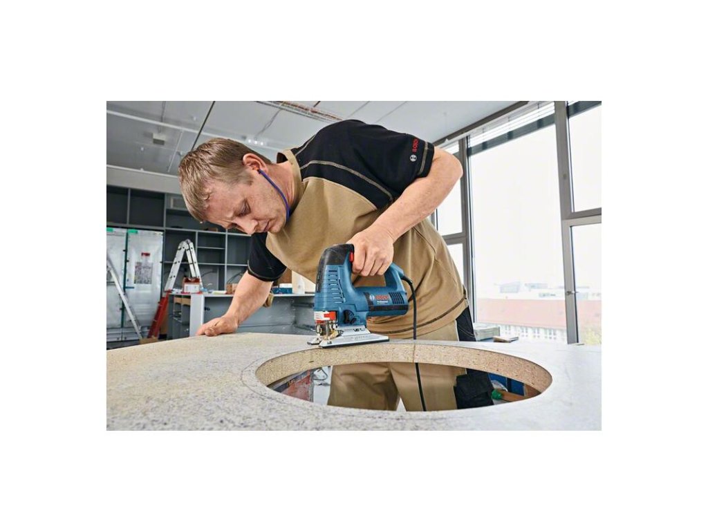 Priamočiara píla GST 160 BCE, Maximálna precíznosť: plná kontrola pre čisté rezy!, Kompaktný, ľahký konštrukčný tvar s malým úchopovým obvodom umožňuje optimálnu kontrolu pri rezaní, Vysokopresné vedenie pílového listu vďaka patentovanej dvojitej valčekovej podpere – pre vynikajúcu presnosť rezania, Silný 800-wattový motor s konštantnou elektronikou ponúka rezervu výkonu aj pri opracovaní náročných materiálov, Odsávací adaptér; L-BOXX 136 (1.600.A01.2G0); Chránič proti vytŕhaniu materiálu (2.601.016.096); 1× list do priamočiarej píly T 144 DP, Precision for Wood (dostupný samostatne ako súprava 3 kusov: 2.608.633.A31); 1× list do priamočiarej píly T 244 D, Speed for Wood (dostupný samostatne ako súprava 3 kusov: 2.608.630.879); 1 list do priamočiarej píly T 308 BP, Precision for Wood (dostupný samostatne ako súprava 3 kusov: 2.608.667.399); 1/1 vložka pre L-BOXX náradie (1.600.A00.2UN)