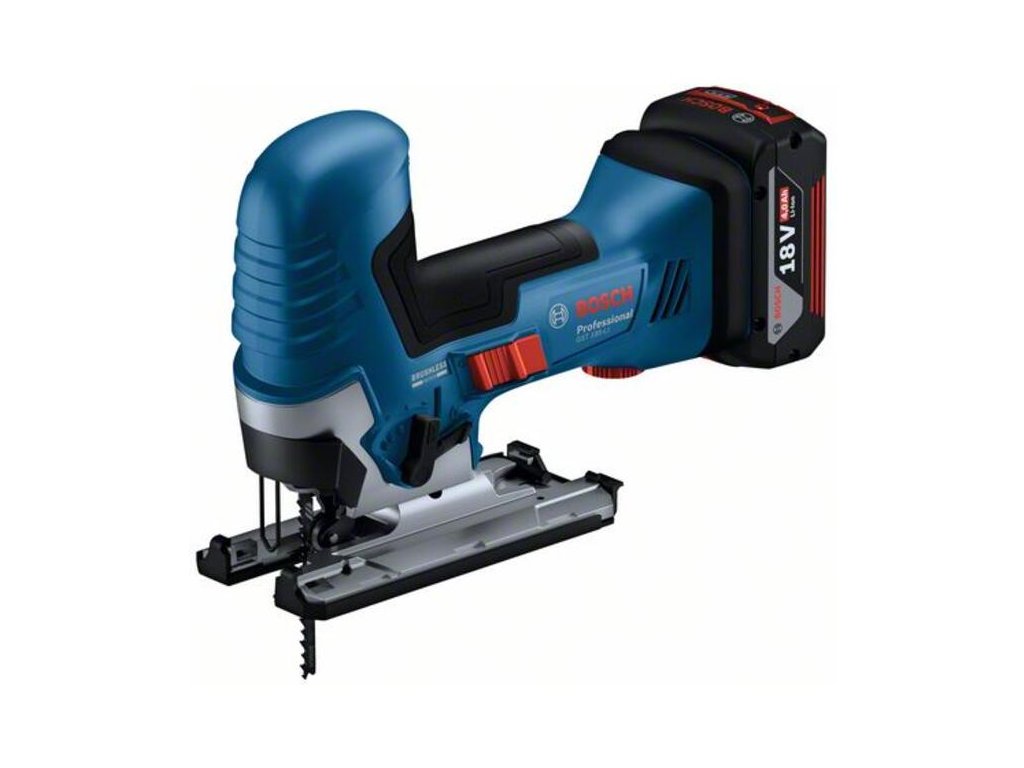 Akumulátorová priamočiara píla GST 185-LI, Akumulátorová priamočiara píla GST 185-LI Professional (s valcovou rukoväťou) je ideálna na oblé a priečne rezy masívneho dreva, drevoštiepkových dosiek a drevokompozitných materiálov, ako aj na hrubšie alebo tvrdšie materiály. Nastavenie rýchlosti umožňuje použitie s rozličnými materiálmi. Vďaka bezuhlíkovému motoru a časom preverenému mechanickému systému ľahko nahradí elektrickú priamočiaru pílu, a to vďaka výkonu zodpovedajúcemu výkonu sieťového náradia. 4-stupňový predkmit umožňuje voľbu medzi rýchlym alebo čistým rezaním. Ponúka základňu nastaviteľnú do 45° na skosené rezy. Beznástrojový systém upínania Bosch SDS uľahčuje výmenu pílových listov. GST 185-LI Professional (s valcovou rukoväťou) je ideálna na oblé a priečne rezy masívneho dreva, drevoštiepkových dosiek a drevokompozitných materiálov, ako aj na hrubšie alebo tvrdšie materiály. Bezuhlíkový motor a časom preverený mechanický systém akumulátorovej priamočiarej píly poskytujú rovnaký výkon ako výkon sieťového náradia. Beznástrojový systém upínania Bosch SDS uľahčuje výmenu pílových listov. 2× akumulátor GBA 18V 4.0Ah (1.607.A35.0M0); Rýchlonabíjačka GAL 18V-40 Professional (2.607.226.251); 1× list do priamočiarej píly T 144 D, Speed for Wood (dostupný samostatne ako súprava 3 kusov: 2.608.630.560); Odsávacia súprava (katalógové číslo 1.619.P17.472); Chránič proti vytŕhaniu materiálu (2.601.016.096)