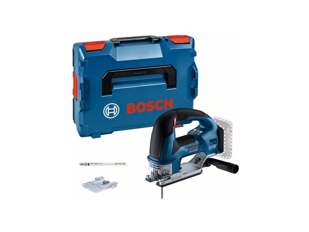 Akumulátorová priamočiara píla GST 18V-155 BC, GST 18V-155 BC Professional (s oblou rukoväťou) je vybavená bezuhlíkovým motorom a má dobre vyváženú konštrukciu. Vrchná uchopovacia časť rukoväti a spúšť s variabilnou rýchlosťou zaručujú vynikajúce ovládanie náradia. Vedenie pílového listu zabraňuje jeho ohýbaniu aj pri malých oblúkoch a podporuje prácu s vynikajúcou presnosťou. Toto náradie je kompatibilné s externým odsávaním prachu. Veľká páčka vysunutia pílového listu a funkcia Drop Control zaručujú vyššiu bezpečnosť práce. Je to ideálne náradie na oblé a priečne rezy masívneho dreva, drevoštiepkových dosiek a drevokompozitných materiálov, ako aj na hrubšie alebo tvrdšie materiály. Je kompatibilná s vodiacimi koľajnicami s adaptérom a so všetkými akumulátormi a nabíjačkami Bosch Professional 18V (Profesionálny 18 V systém). L-BOXX 136 (1.600.A01.2G0); Vložka L-BOXX 1/1 na náradie a nabíjačku (1.600.A02.HB7); 1× list do priamočiarej píly T 144 DP, Precision for Wood (dostupný samostatne ako súprava 3 kusov: 2.608.633.A31); 1 list do priamočiarej píly T 308 BP, Precision for Wood (dostupný samostatne ako súprava 3 kusov: 2.608.667.399); Chránič proti vytŕhaniu materiálu (katalógové číslo 1.600.A02.08K); Odsávacia dýza (katalógové číslo 1.600.A01.C3Z); Odsávací kryt (katalógové číslo 1.600.A01.T4N)