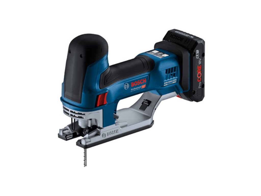 Akumulátorová priamočiara píla GST 18V-155 SC, GST 18V-155 SC Professional (s valcovou rukoväťou) je vybavená bezuhlíkovým motorom a má dobre vyváženú konštrukciu. Jej ergonomický tvar umožňuje uchopenie v rozsahu 360° a obojstranný spínač pre pravákov aj ľavákov zaručujúce vynikajúcu manipuláciu a ovládanie náradia – aj pri rezaní zospodu. Vedenie pílového listu zabraňuje jeho ohýbaniu aj pri malých oblúkoch a podporuje prácu s vynikajúcou presnosťou. Toto náradie je kompatibilné s externým odsávaním prachu. Veľká páčka vysunutia pílového listu a funkcia Drop Control zaručujú vyššiu bezpečnosť práce. Je to ideálne náradie na oblé a priečne rezy masívneho dreva, drevoštiepkových dosiek a drevokompozitných materiálov, ako aj na hrubšie alebo tvrdšie materiály. Je kompatibilná s vodiacimi koľajnicami s adaptérom a so všetkými akumulátormi a nabíjačkami Bosch Professional 18V (Profesionálny 18 V systém). Toto náradie je vybavené robustnou odlievanou hliníkovou základnou doskou s dvomi upevňovacími bodmi na vyššiu stabilitu a bezpečnosť. Technológia Adaptive Speed Control (ASC) podporuje vysokú presnosť na začiatku rezania. Modul konektivity umožňuje individuálne nastavenia svetla a rýchlosti a poskytuje dôležité informácie o náradí. 2× akumulátor ProCORE18V 4.0Ah (1.600.A01.6GB); Rýchlonabíjačka GAL 18V-40 Professional (1.600.A01.9RJ); L-BOXX 136 (1.600.A01.2G0); Vložka L-BOXX 1/1 na náradie a nabíjačku (1.600.A02.HB7); 1× list do priamočiarej píly T 144 DP, Precision for Wood (dostupný samostatne ako súprava 3 kusov: 2.608.633.A31); 1 list do priamočiarej píly T 308 BP, Precision for Wood (dostupný samostatne ako súprava 3 kusov: 2.608.667.399); Chránič proti vytŕhaniu materiálu (katalógové číslo 1.600.A02.08K); Odsávacia dýza (katalógové číslo 1.600.A01.C3Z); Odsávací kryt (katalógové číslo 1.600.A01.T4N)