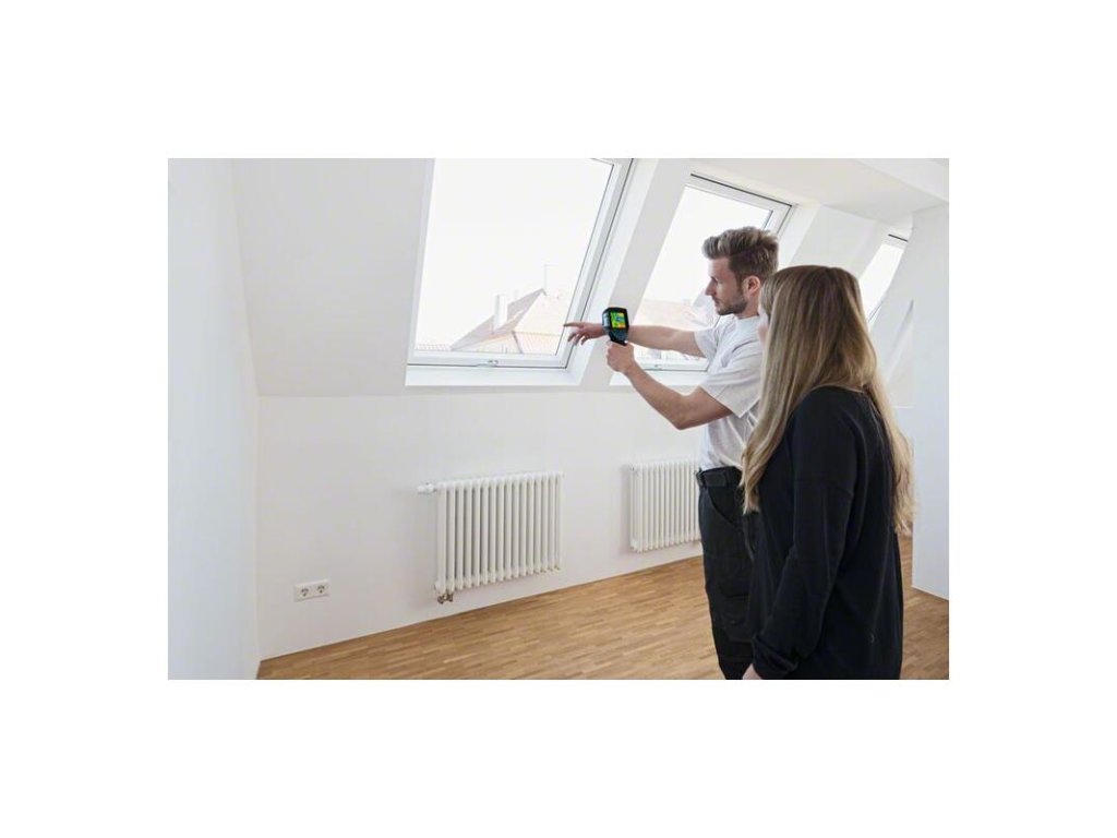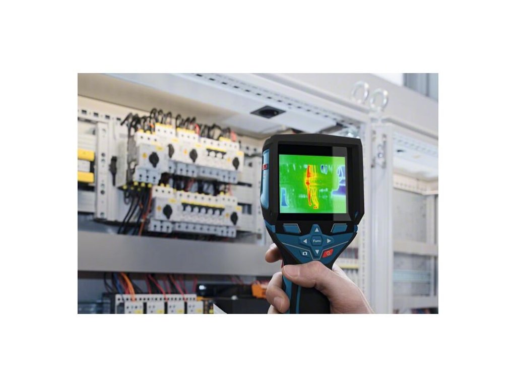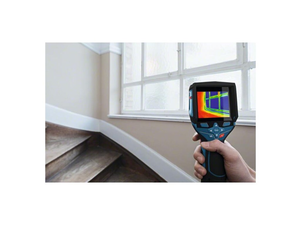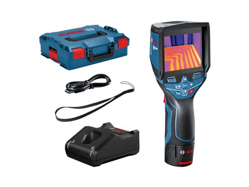 Termokamera GTC 400 C, Termokamera GTC 400 C Professional umožňuje meranie a vizualizáciu teplotných rozdielov v priebehu niekoľkých sekúnd a jednoduchý záznam výsledkov. Aplikácia Bosch ThermalOn umožňuje dokumentáciu a rýchly prenos nameraných hodnôt. Inteligentná technológia obrázka v obrázku prekrýva detailné reálne snímky a termosnímky (19 200 pix), čím sa získava vysokokvalitný obraz umožňujúci jednoznačnú lokalizáciu teplotných rozdielov. Systém duálneho napájania – možnosť napájania akumulátorom 12 V Li-ion alebo štandardnými alkalickými batériami. Ideálne na kontrolu izolácií, vykurovacích systémov, prúdenia tepla a vyhľadávanie prehriatych komponentov. Inteligentný prístroj GTC 400 C Professional je vynikajúcou pomôckou na podporu rozličných profesií v každej fáze projektov: od konzultácií so zákazníkom s jednoduchou prezentáciou snímok situácie až po prípravné práce, napr. kontrolu vedenia rozvodov či prípravu projektovej dokumentácie a dokonca nadväzujúce práce. Tento merací prístroj sa nesmie používať na zdravotnícke účely. 1× akumulátor GBA 12V 2.0Ah (1.600.Z00.02X); L-BOXX 136 (1.600.A01.2G0); Vložka L-BOXX na náradie; Rýchlonabíjačka GAL 12V-40 Professional (1.600.A01.9R3); Kábel Micro USB (2.609.120.670); Pútko na zápästie