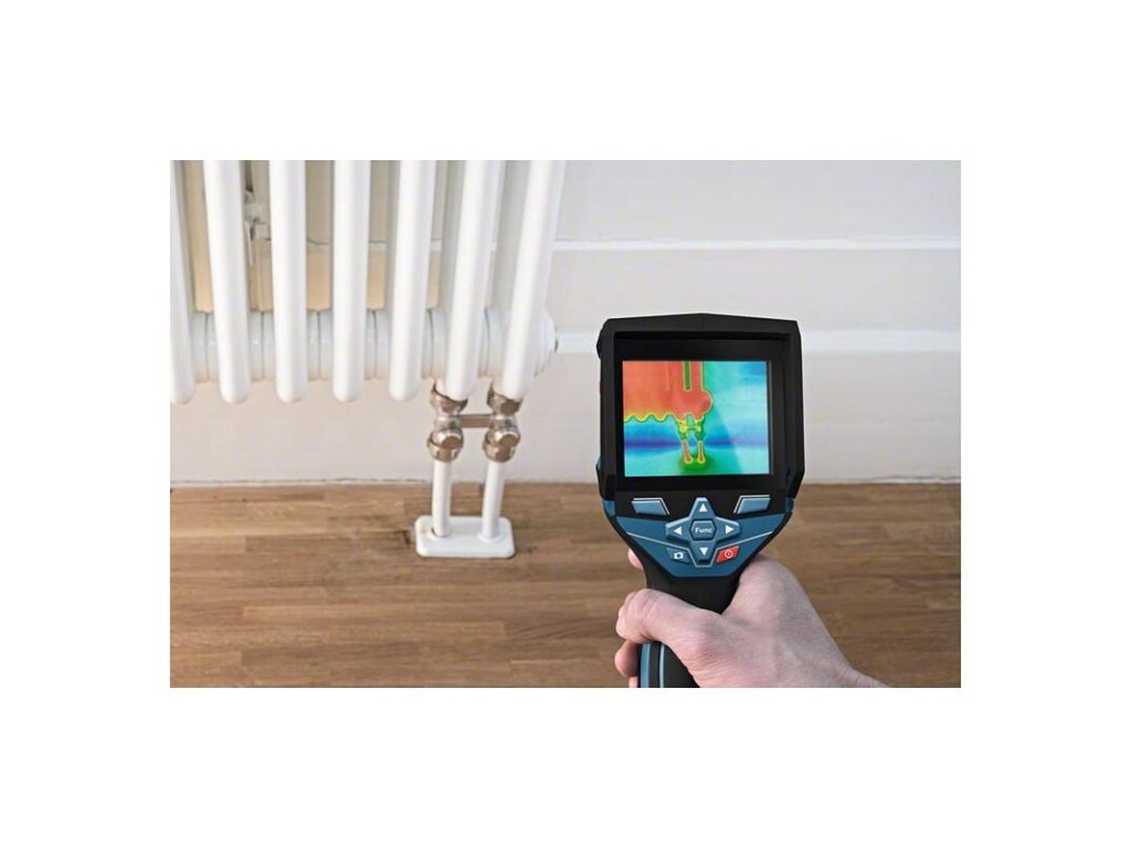 Termokamera GTC 400 C, Termokamera GTC 400 C Professional umožňuje meranie a vizualizáciu teplotných rozdielov v priebehu niekoľkých sekúnd a jednoduchý záznam výsledkov. Aplikácia Bosch ThermalOn umožňuje dokumentáciu a rýchly prenos nameraných hodnôt. Inteligentná technológia obrázka v obrázku prekrýva detailné reálne snímky a termosnímky (19 200 pix), čím sa získava vysokokvalitný obraz umožňujúci jednoznačnú lokalizáciu teplotných rozdielov. Systém duálneho napájania – možnosť napájania akumulátorom 12 V Li-ion alebo štandardnými alkalickými batériami. Ideálne na kontrolu izolácií, vykurovacích systémov, prúdenia tepla a vyhľadávanie prehriatych komponentov. Inteligentný prístroj GTC 400 C Professional je vynikajúcou pomôckou na podporu rozličných profesií v každej fáze projektov: od konzultácií so zákazníkom s jednoduchou prezentáciou snímok situácie až po prípravné práce, napr. kontrolu vedenia rozvodov či prípravu projektovej dokumentácie a dokonca nadväzujúce práce. Tento merací prístroj sa nesmie používať na zdravotnícke účely. L-BOXX 136 (1.600.A01.2G0); Vložka L-BOXX na náradie; Kábel Micro USB (2.609.120.670); Pútko na zápästie
