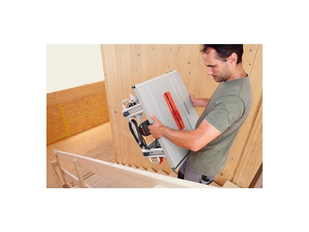 Stolná píla GTS 10 J, Výkonná, s veľkou kapacitou rezu, Extrémne kompaktná a výkonná, Výkonný motor 1 800 W s plynulým rozbehom a ochranou pred preťažením umožňuje rýchly postup práce, Optimálna preprava vďaka kompaktnej konštrukcii a rozličným rukovätiam na prenášanie, Uhlový doraz (2.610.015.507); Odsávací adaptér (2.610.015.509); Paralelný doraz (2.610.016.853); Posúvacia tyč (2.610.015.022); 1× pílový kotúč, Optiline Wood, 254 × 2,8/1,8 × 30 mm, 24 (2.608.838.412)