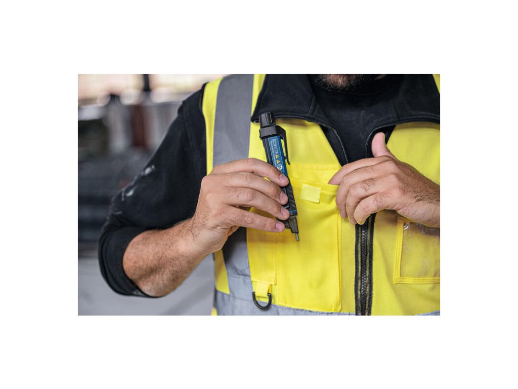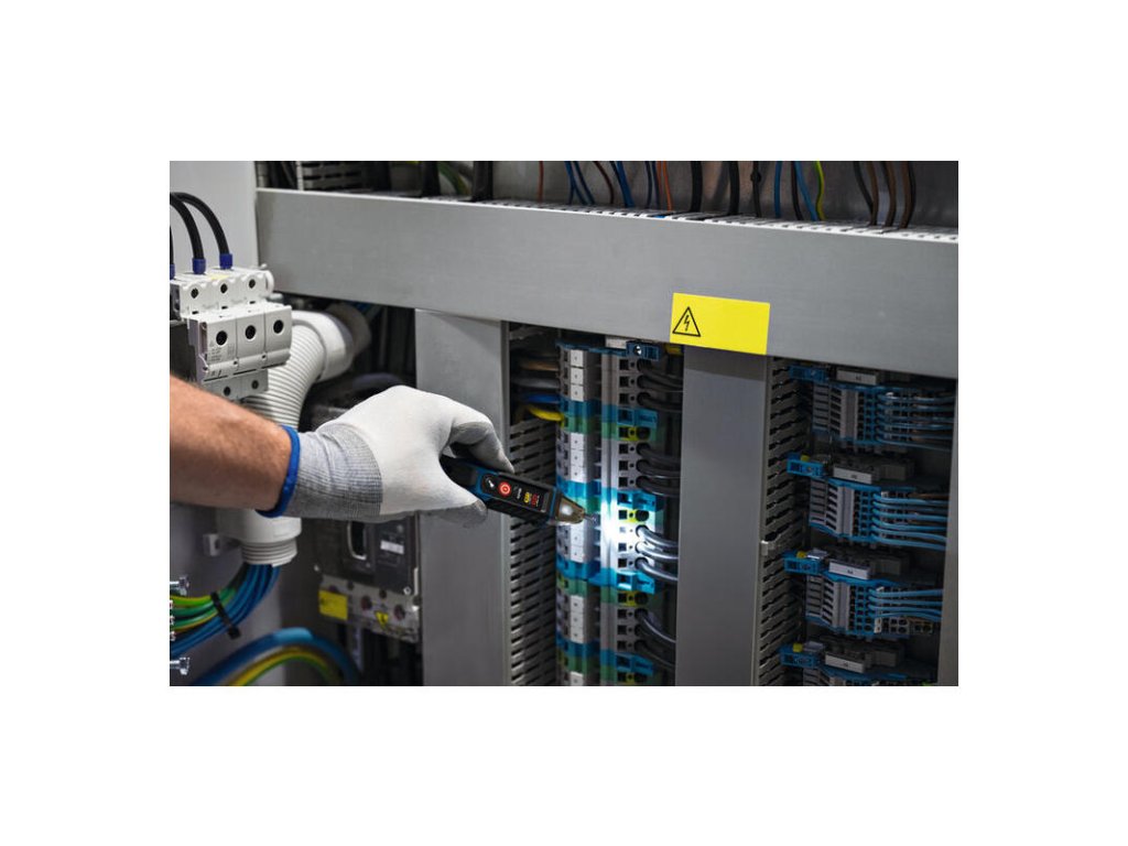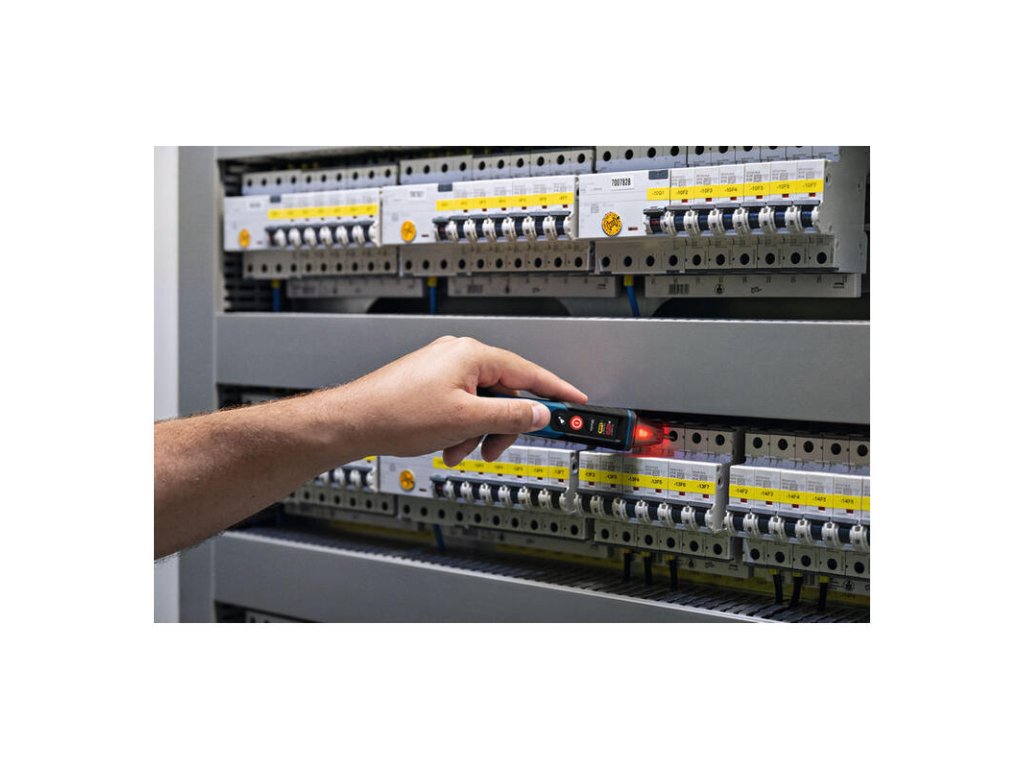 Zvýšte bezpečnosť pri práci s elektrinou vďaka profesionálnej bezkontaktnej skúšačke GVD 1000-17. Tento odolný prístroj s krytím IP67 deteguje napätie v širokom rozsahu a upozorní vás tromi spôsobmi: farebným svetlom, zvukom a vibráciou.