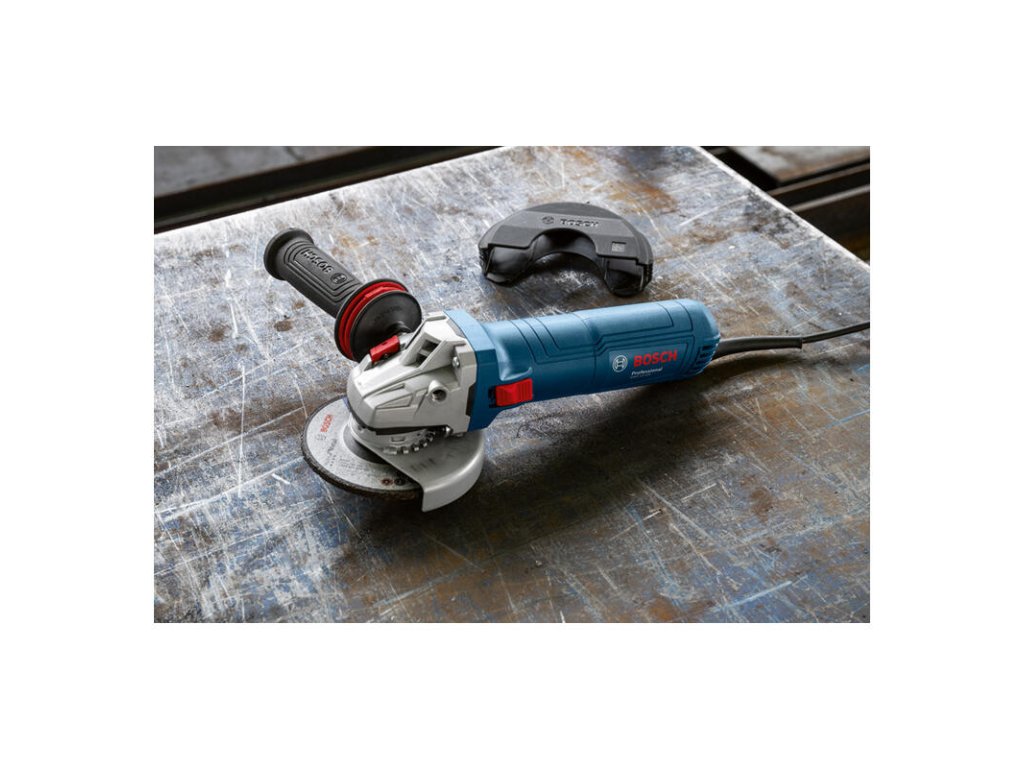 Uhlová brúska GWS 12-125, Nájsť uhlovú brúsku na jednoduché a komfortné každodenné používanie môže byť náročné. Preto sme vyvinuli rodinu produktov GWS 12. GWS 12-125 Professional s antivibračnou bočnou rukoväťou je kompaktné, komfortné, výkonné a súčasne ergonomické náradie. Pri používaní tohto náradia oceníte vyšší komfort a menšiu námahu vďaka ergonomickej konštrukcii, zmenšenej rukoväti a antivibračnej bočnej rukoväti. Odolný motor dobre zvláda preťažovanie, takže pri každodennej práci s kovom môžete postupovať rýchlejšie. S ohľadom na jednoduchú manipuláciu je toto náradie vybavené bezkľúčovým ochranným krytom a aretovateľným spínačom. Takisto je vybavené ochranou proti opätovnému spusteniu a súčasťou balenia je aj plastový nasúvací ochranný kryt pri rezaní. GWS 12-125 Professional s antivibračnou bočnou rukoväťou je náradím na každodenné brúsenie a rezanie kovu, dlaždíc a muriva. Toto náradie je kompatibilné s odsávacími krytmi GDE 125 EA-T Professional a GDE 115/125 FC-T Professional. Kartónová škatuľa; Prídavná rukoväť Vibration Control (2.608.900.000); Ochranný kryt (1.605.510.365); Nasadzovací ochranný kryt pri rezaní, kovový (2.608.000.757); Upínacia príruba (1.605.703.099); Upínacia matica (1.603.340.040); Kolíkový kľúč (1.607.950.043)