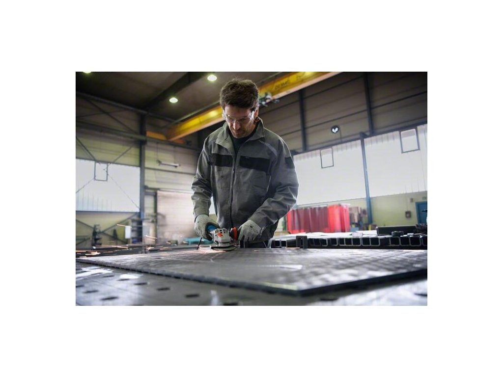 Uhlová brúska GWS 14-125 S, Maximálna produktivita vďaka vyššiemu výkonu a vyššej robustnosti, lepšia ochrana proti prachu a nastavenie otáčok – preto je GWS 14-125 S Professional takým extrémne efektívnym náradím. Výrazne menšia rukoväť poskytuje omnoho vyšší komfort pri práci. Funkcie KickBack Control, Restart Protection a bočná rukoväť Vibration Control zaručujú vyššiu ochranu používateľa. Takisto ponúka funkcie konštantných otáčok, plynulého spustenia a ochrany pred preťažením. Prídavná rukoväť Vibration Control (2.608.900.000); Ochranný kryt (1.605.510.365); Nasadzovací ochranný kryt pri rezaní, kovový (2.608.000.757); Kolíkový kľúč (1.607.950.043); Upínacia príruba (1.605.703.099); Upínacia matica (1.603.340.040); Kufor na prenášanie (1.605.438.182)