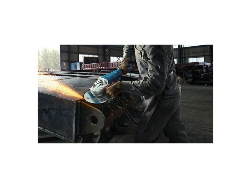 Uhlová brúska GWS 24-230 P, Novinka GWS 24 uvoľňuje plný potenciál výkonu 2 400 W, ktorý umožňuje rýchlejšiu prácu a súčasne nízke vibrácie! Nový patentovaný motor zaručuje až dvojnásobne* vyššiu rýchlosť úberu materiálu, čo zvyšuje produktivitu a súčasne redukuje vibrácie. Pomocná rukoväť Vibration Control ešte viac zvyšuje komfort obsluhy. Pogumovaná zadná rukoväť navyše zlepšuje úchop náradia a jeho ovládanie. Kartónová škatuľa; Ochranný kryt (1.619.P15.668); Prídavná rukoväť (1.602.025.030); Kolíkový kľúč (1.607.950.061); Upínacia príruba (katalógové číslo 2.605.703.014); Upínacia matica (1.603.345.043)