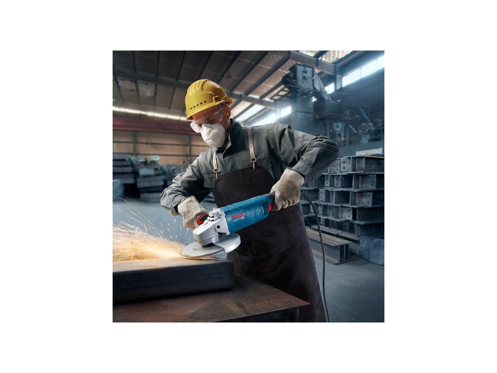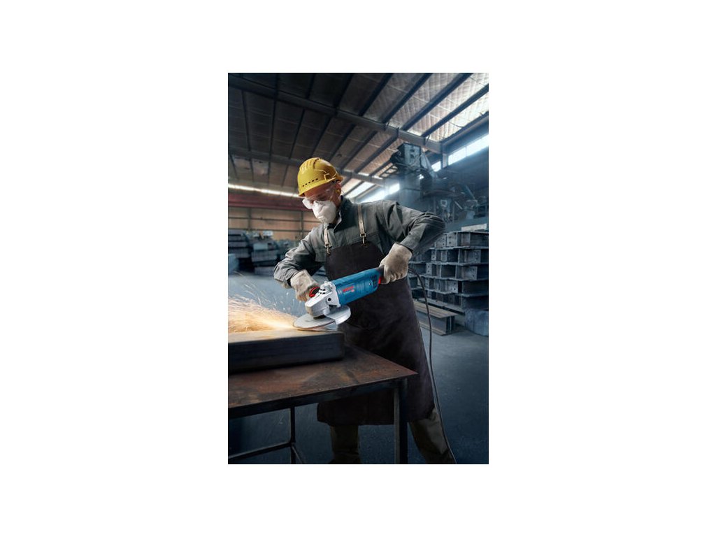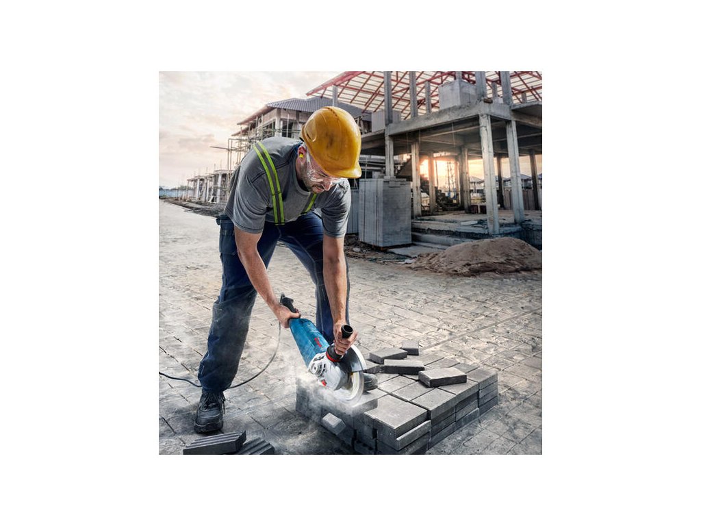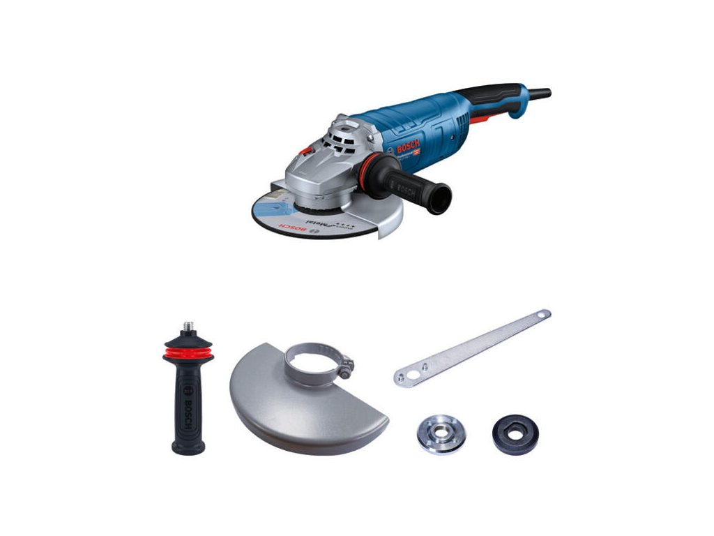 Uhlová brúska GWS 27-180 J, Pomalé rýchlosti rezania a brúsenia majú negatívny vplyv na váš výkon, efektivitu a produktivitu. Preto je Bosch GWS 27-180 J Professional vybavená veľmi výkonným motorom triedy 2 700 W, takže rýchlo zvládne skutočne náročné práce. Oceníte stabilný vysoký výkon tohto náradia, a to najmä pri využívaní vysokého krútiaceho momentu na najnáročnejšie brúsenie alebo rezanie betónu alebo kovu. Je to preto, že vysokovýkonný motor prekonáva ostatné náradie silou a extrémnou kapacitou pri preťažovaní. Spolu s bezpečnosťou a komfortom, ktoré poskytujú funkcie plynulého spustenia a ochrany proti opätovnému spusteniu, máte výnimočné náradie. Problémom nie je ani údržba: toto náradie má zameniteľné komponenty s ďalšími veľkými uhlovými brúskami Bosch, takže ho môžete jednoducho opraviť a rýchlo sa vrátiť k práci. Ako pracovníci s kovmi, technici alebo stavbári sa presvedčíte, že toto je špičkové náradie na rezanie a brúsenie kovu, betónu a kameňa. Upínacia príruba (1.605.703.099); Upínacia matica (1.603.340.040); Kolíkový kľúč (1.607.950.048); Prídavná rukoväť (1.602.025.030); Ochranný kryt (1.619.P15.622)