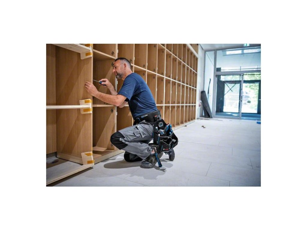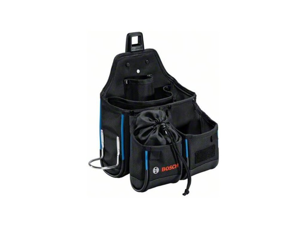 Taška na náradie GWT 4, Opaskové puzdro na náradie Bosch GWT 4 ponúka dômyselné funkcie a možnosti uloženia, ako napríklad držiak na kladivo a vrecko na klince. Premyslené usporiadanie jeho priehradiek zabezpečuje vynikajúcu dostupnosť a organizáciu náradia. Pre väčšie pohodlie ponúka integrovaný stojan vrecka stabilitu a jednoduchú manipuláciu. Konfigurácia uzatvárateľného vrecka na klince poskytuje rýchle a bezpečné uloženie klincov a skrutiek. Vrecko na opasok s náradím je ideálne pre všetkých, ktorí sa chcú vyhnúť zdĺhavému hľadaniu náradia a majú radi všetko náradie vždy po ruke. Vďaka dvojitému prešitiu a zosilnenej konštrukcii z polyesteru 1000D je robustné vrecko odolné proti prepichnutiu. Systém Bosch Professional ProClick umožňuje jednoduchý spôsob pripájania, výmeny a nastavovania puzdier ProClick na opasok bez toho, aby bolo potrebné opasok odopnúť.