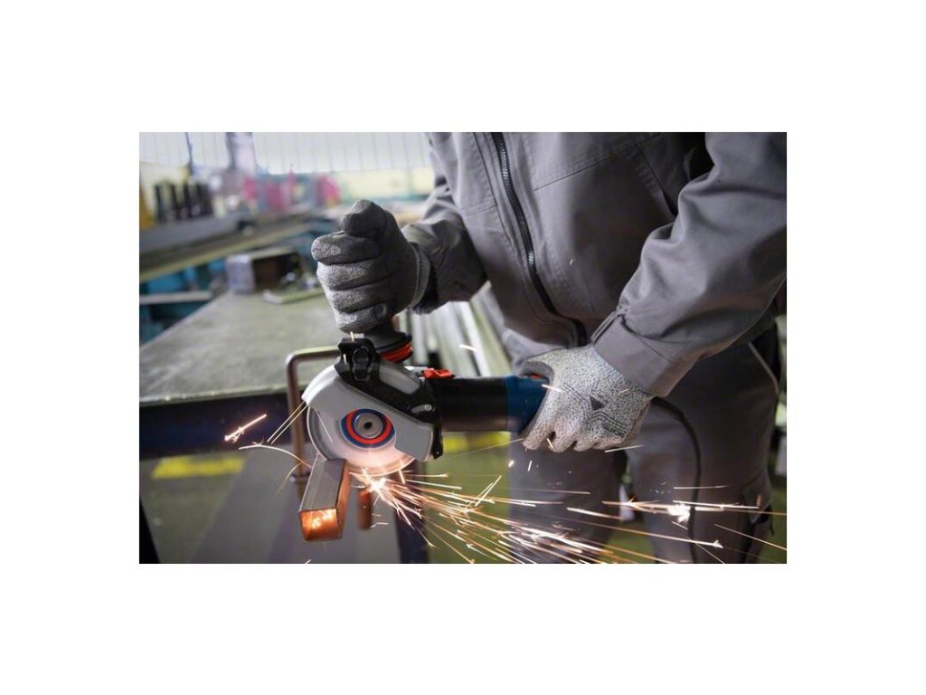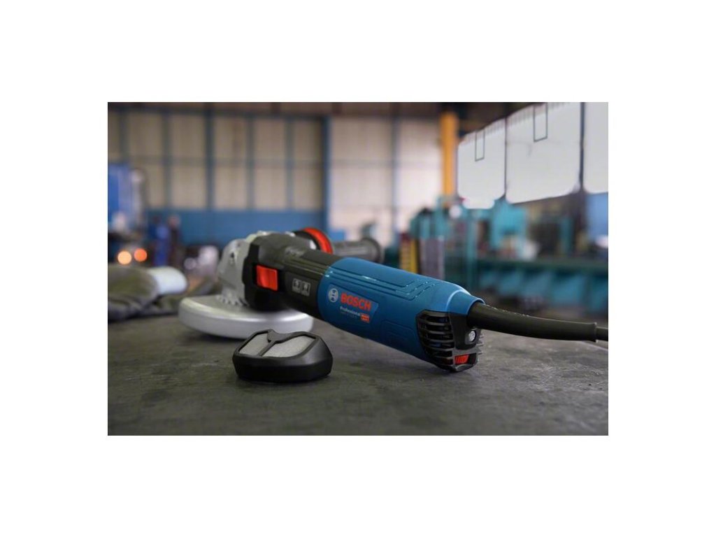 Uhlová brúska s X-LOCK GWX 17-125 S, GWX 17-125 S Professional zaisťuje vysoký výkon, odolnosť voči preťaženiu a vylepšenú ochranu voči prachu vďaka prieduchom na zadnej strane náradia s odnímateľným prachovým filtrom pre maximálnu produktivitu. Uhlová brúska s výkonným 1 700 W motorom vďaka svojej výrazne menšej rukoväti zaručuje väčšie pohodlie pri práci s kovom. Pre lepšiu ochranu užívateľa je vybavená funkciami KickBack Control (ochrana proti spätnému rázu), Restart Protection (ochrana proti nežiaducemu spusteniu) a postrannou rukoväťou s Vibration Control (zníženie hodnoty vibrácií) a rýchloupínacím systémom X-LOCK pre pohodlnú výmenu nástrojov. Malá uhlová brúska sa vyznačuje funkciami Constant Speed (konštantná elektronika), Soft Start (plynulý rozbeh motora) a Overload Protection (ochrana proti preťaženiu). Prídavná rukoväť Vibration Control (2.608.900.000); Ochranný kryt (1.605.510.365); Nasadzovací ochranný kryt pri rezaní, kovový (2.608.000.756); Prachový filter (2.607.432.053); Kartónová škatuľa