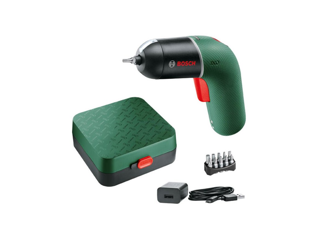 Akumulátorový skrutkovač IXO 6; Plné ovládanie na bezproblémovú prácu – intuitívne skrutkovanie od začiatku do konca; Plné ovládanie prostredníctvom plynule meniteľného ovládania rýchlosti – už žiadne rozštiepené drevo ani poškodené skrutky; Plné informácie vďaka indikátoru akumulátora s 3 diódami LED – majte pri práci podrobný prehľad o stave akumulátora; Rozsiahle možnosti vďaka upevňovaciemu rozhraniu – vynikajúce nadstavce na prácu v domácnosti; Nabíjačka Micro-USB; 10 skrutkovacích hrotov; Škatuľa