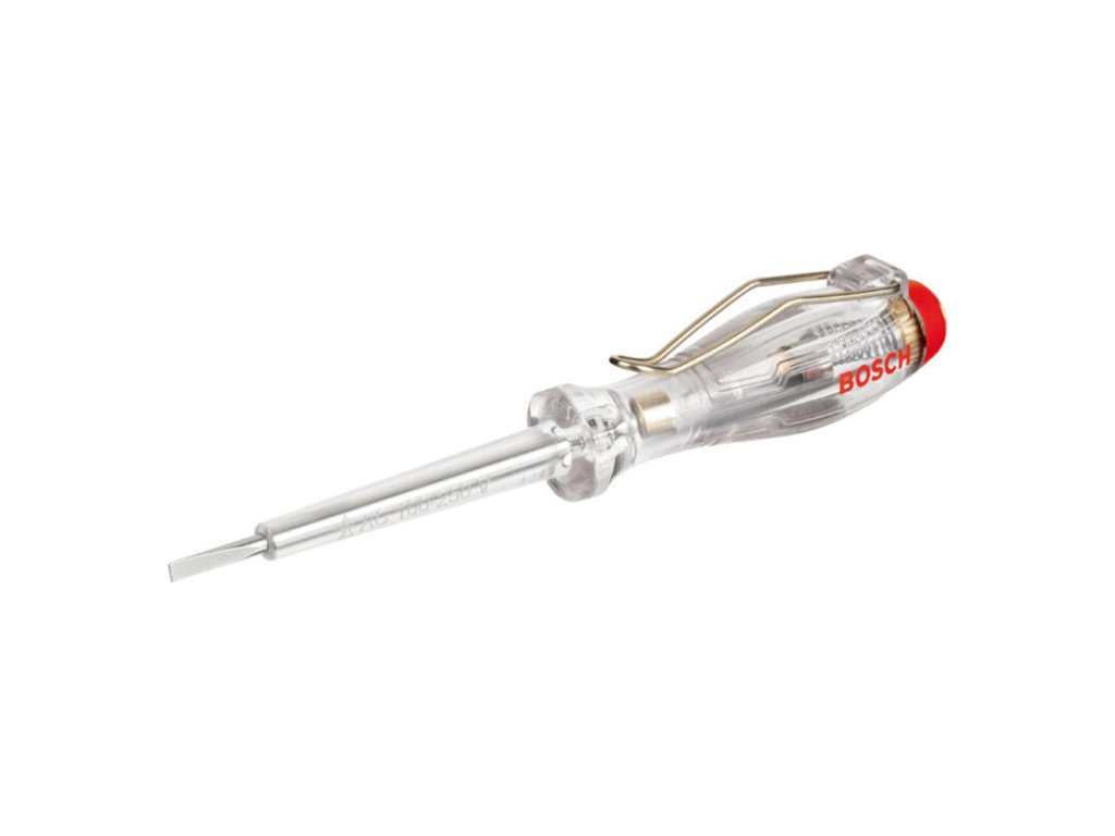 Skrutkovač Jednopólová fázová skúšačka SL3, Profesionálni remeselníci potrebujú náradie, ktoré sa ľahko používa a spĺňa všetky legislatívne požiadavky. Fázová skúšačka Bosch Professional je certifikovaná podľa normy DIN VDE 0680-6. S týmto náradím môžete zistiť, či objektom preteká prúd. Deteguje napätie striedavého prúdu v rozsahu 120 V – 250 V a integrovaná dióda informuje, či objektom preteká prúd. Táto skúšačka má izolovaný driek z ocele S2. Vďaka ergonomickej konštrukcii sa používa komfortne a na praktickú odolnú sponu. Vďaka pridaniu tejto fázovej skúšačky do nášho radu náradia Bosch Professional získavate náradie spoľahlivej kvality Bosch, ktoré spĺňa všetky legislatívne požiadavky. Táto fázová skúšačka má antirolovaciu konštrukciu a rozsah detekcie striedavého prúdu 120 V – 250 V. Hang Tag