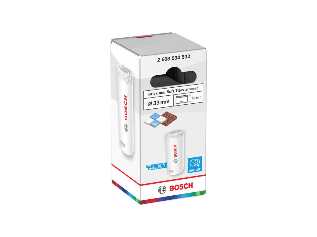 Dierovka Bosch s priemerom 33 mm a karbidovým posypom je ideálna pre vŕtanie do murovaných stien a mäkkých obkladov. Vďaka absencii klasických zubov je odolná voči abrázii a zvládne prácu s tehlou či pórobetónom.