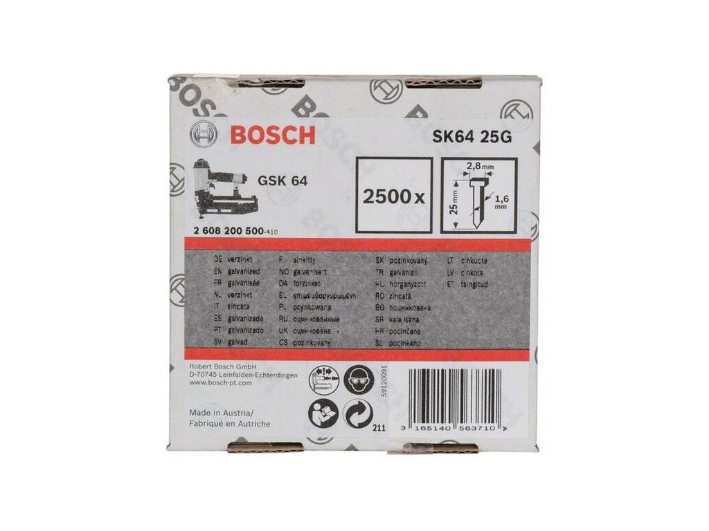 Klinec so zápustnou hlavou SK64 25mm, 1,6mm, Pozinkované - Bosch