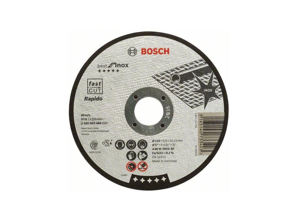 rezný kotúč rovný Best for INOX Rapido A 60 W INOX BF, 125 x 22,23 x 0,8 mm - Bosch