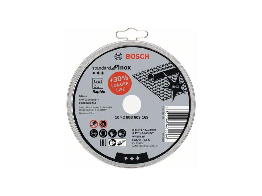 Bosch Kotúč rezací rovný Standard for INOX -Rapido WA 60 BF 115 22,23 1,0mm (10ks) 2608603254